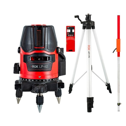 Комплект: лазерный уровень RGK LP-62G + штатив RGK LET-170, приемник RGK LD-9, рейка RGK LR-2