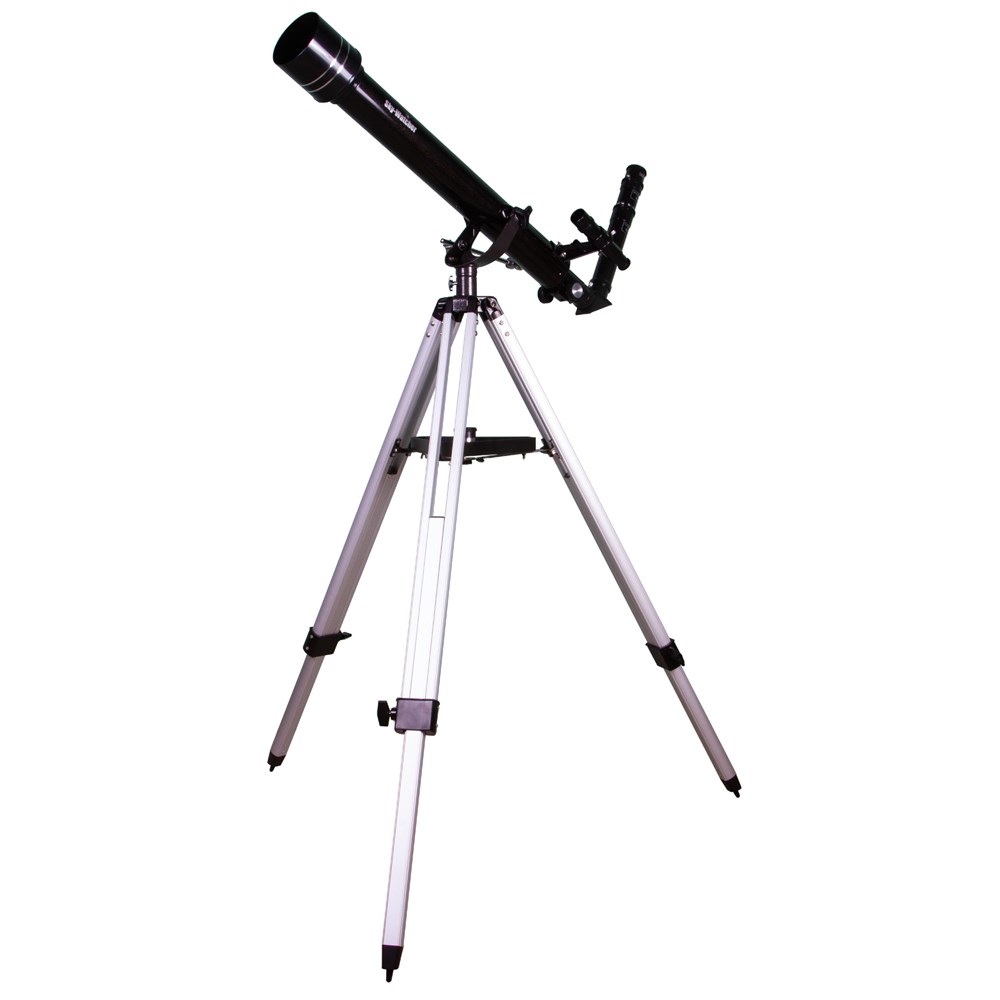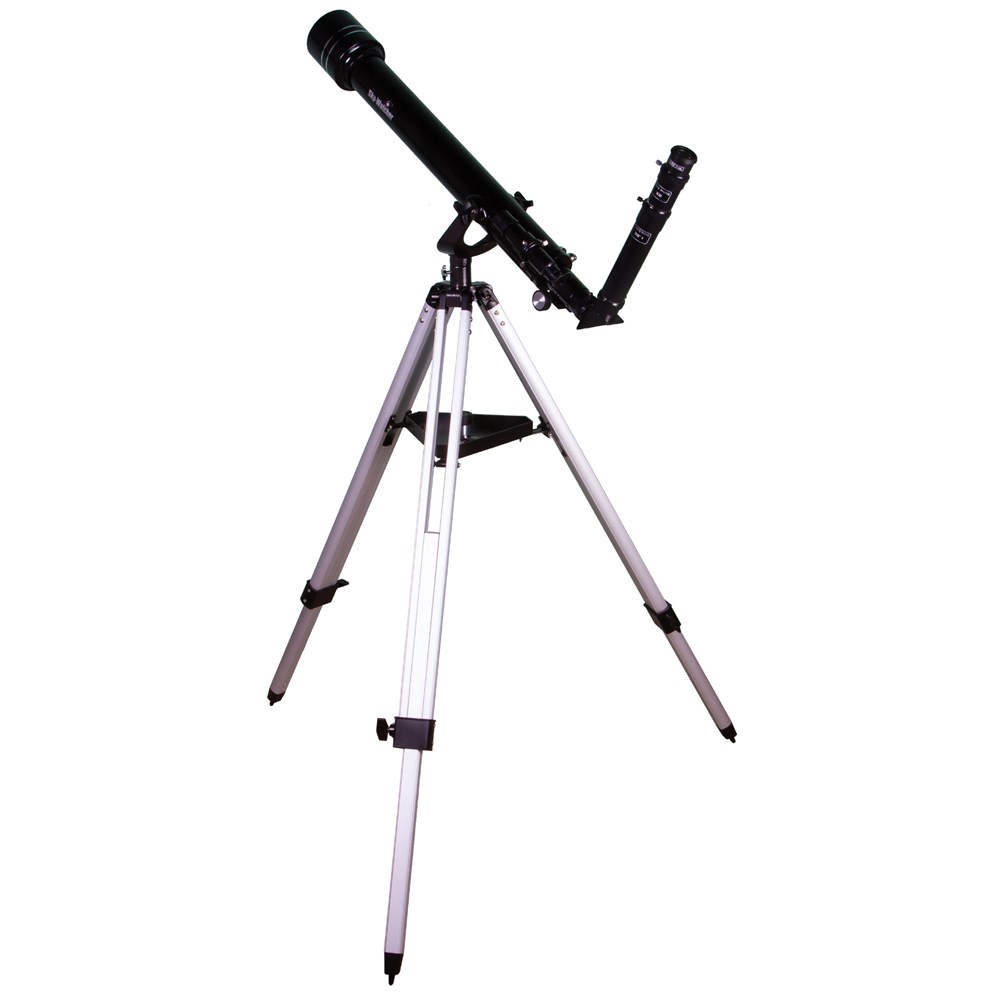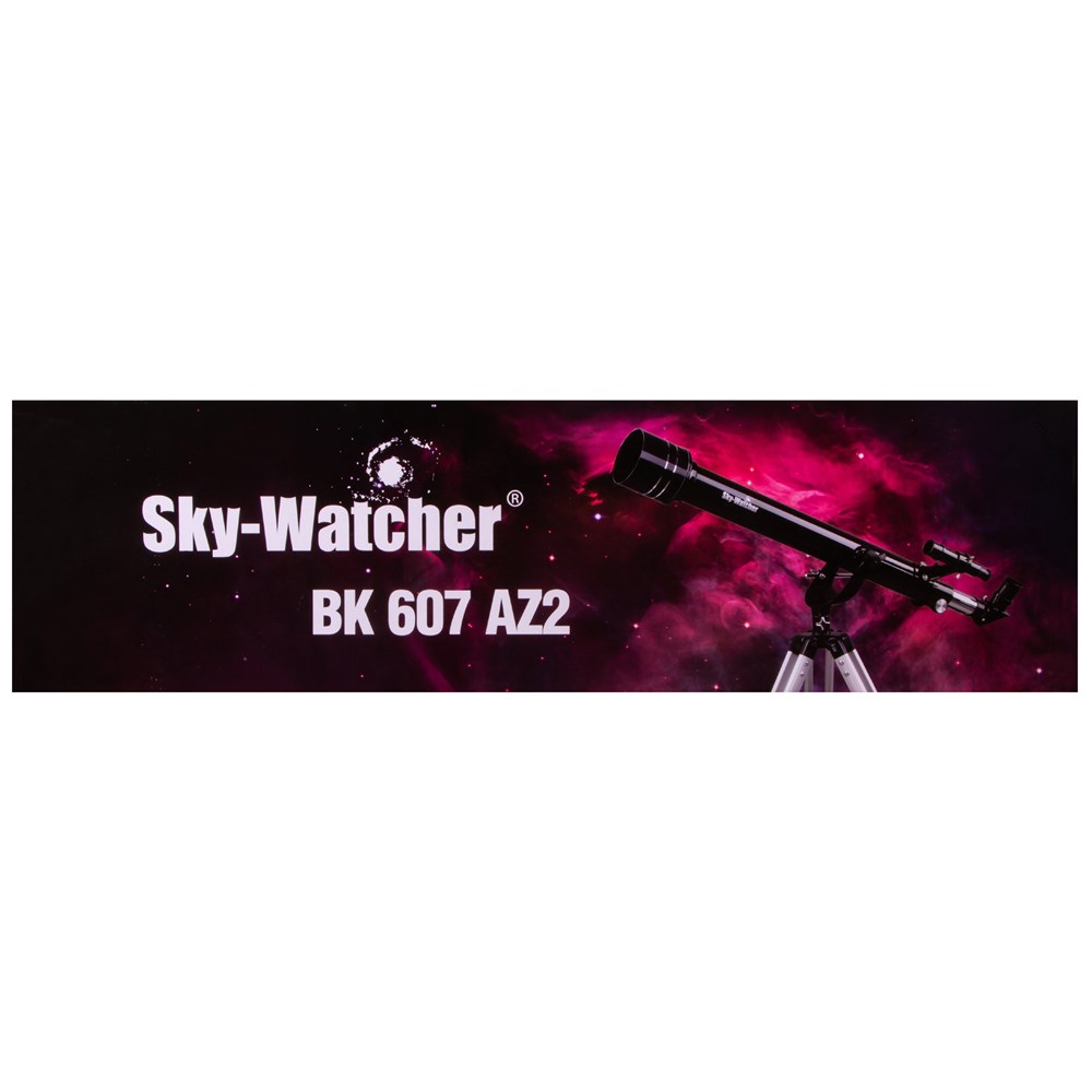 Sky-Watcher BK 607AZ2 – телескоп для начинающих астрономов, взрослых и детей. Он прост в управлении, не требует первичной настройки и регулярной юстировки, прекрасно подходит для наблюдения Луны, планет земной группы и наземных объектов. В него также можно увидеть дальние области Солнечной системы, но без деталей. Телескоп собран по схеме рефрактора из ахроматических элементов, поэтому передает четкую и контрастную картинку без цветовых искажений. В комплектацию включено множество аксессуаров, которые позволят приступить к наблюдениям незамедлительно: это окуляры, линза Барлоу, оптический искатель и диагональное зеркало. Дополнительные приобретения не понадобятся. Азимутальная монтировка AZ2 – это простая вилочная монтировка с микровинтом на вертикальной оси и стопорными винтами на обеих осях. Телескопом, оснащенным AZ2, легко управлять – с наведением справится даже ребенок. Тренога алюминиевая с регулировкой высоты. В центре треноги располагается лоток для аксессуаров, на котором можно размещать все необходимые для наблюдений принадлежности.