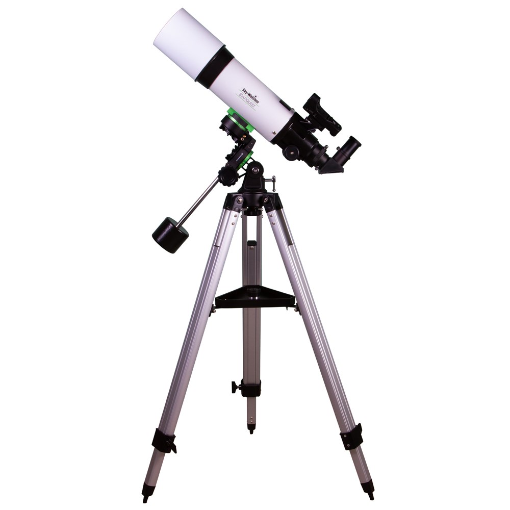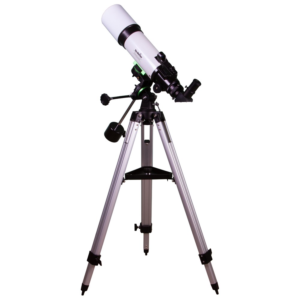 Телескоп Sky-Watcher AC102/500 StarQuest EQ1 предназначен для наблюдений Луны, планет Солнечной системы, метеоров, комет, а также ярких туманностей, галактик и звезд. Благодаря небольшому фокусному расстоянию этот рефрактор – один из самых компактных в своем классе, что делает его отличным походным инструментом для изучения космоса и наземных объектов. Он прост в управлении, не требует никаких навыков и станет отличным подарком требовательному любителю астрономии. Оптика собрана из ахроматических элементов, поэтому изображение избавлено от оптических искажений. Объектив хорошо собирает свет, поэтому телескоп подходит для рассматривания тусклых астрономических объектов. Отметим и исчерпывающий набор аксессуаров – в комплект включены два окуляра с разными фокусными расстояниями, диагональное зеркало и искатель с красной точкой. Этот телескоп будет готов к наблюдениям сразу же после сборки! Экваториальная монтировка управляется двумя ручками тонких движений. Шестерни (122 зубца каждая) с червячными передачами обеспечивают плавный и точный ход, упрощают ведение объектов по небосклону. Крепление оптической трубы к монтировке – «ласточкин хвост». Сама монтировка устанавливается на алюминиевую треногу. Высота треноги регулируемая, есть лоток для аксессуаров.