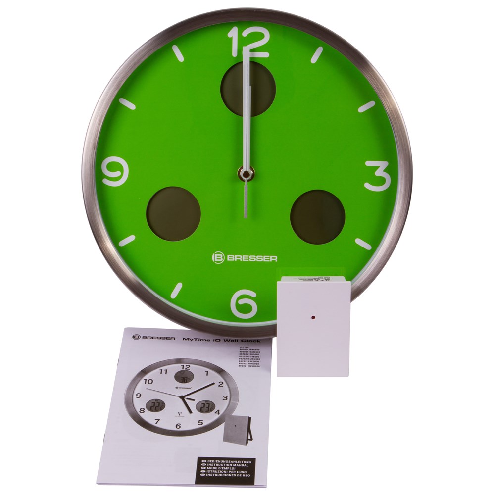 Часы настенные Bresser MyTime io NX Thermo/Hygro, 30 см, зеленые