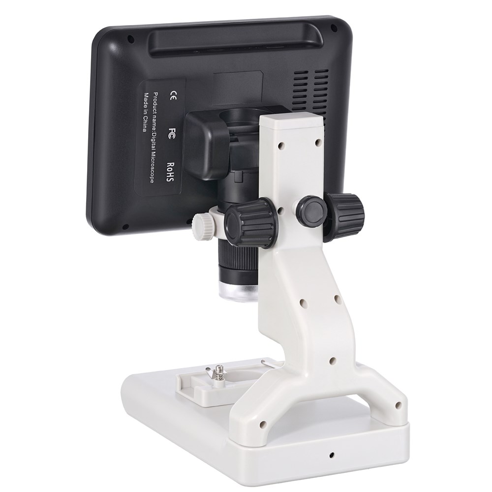 Цифровой микроскоп Levenhuk Rainbow DM700 LCD предназначен для изучения крупных объектов, а также фотографирования и видеозаписи исследований. С его помощью можно изучать минералы, текстиль, насекомых, части растений, небольшие механизмы и электронику. Микроскоп снабжен комбинированной подсветкой, поэтому позволяет проводить наблюдения и в проходящем, и в отраженном свете. Дополнительный плюс – микроскопом можно управлять через беспроводной пульт. Вместо классических окуляров в этом микроскопе установлен большой 7-дюймовый ЖК-экран (диагональ около 18 см). Картинка выводится в цвете, она контрастная и высокодетализированная. Доступно цифровое и оптическое увеличение. Общий диапазон кратности составляет от 10 до 200 крат, оптический – от 10 до 50 крат. Также микроскоп дает возможность делать фото в качестве 12 Мпикс и записывать видео в разрешении Full HD. Запись ведется на карту памяти, которая приобретается отдельно. Предметный столик снабжен зажимами. Подсветка расположена сверху и снизу, поэтому рассматривать можно образцы любой степени прозрачности. Есть регулировка яркости. Управлять микроскопом можно при помощи кнопок на корпусе или используя пульт дистанционного управления. Пульт многофункциональный, среди прочего он позволяет регулировать яркость подсветки, выбирать увеличение, запускать запись видео, фотографировать. Дополнительно микроскоп комплектуется базовым набором готовых микропрепаратов.