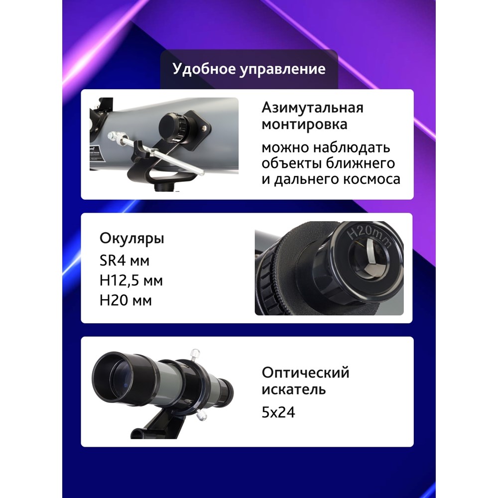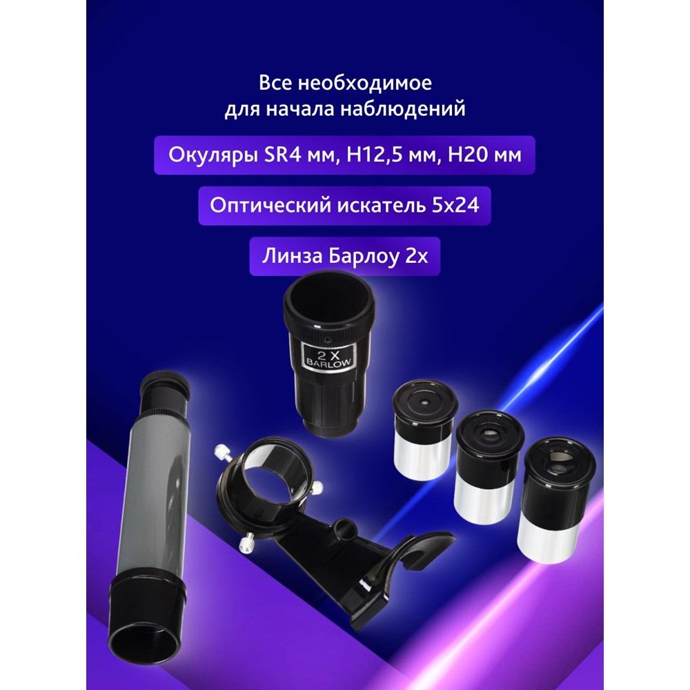 | Окуляры в комплекте | SR4 мм (175х), H12,5 мм (56х), H20 мм (35х) |