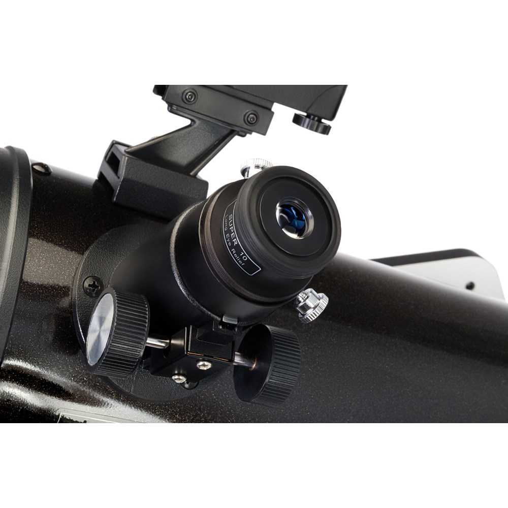 Рефлектор Ньютона Sky-Watcher Dob 130/650 Virtuoso GTi GOTO установлен на настольную компьютеризированную монтировку Добсона, отличается высокой светосилой, хорошо подходит для визуальных наблюдений дальнего космоса и при желании может использоваться для любительской астрофотографии. Телескоп достаточно небольшой, что делает его удачным выбором для выездов и размещения на балконе или лоджии. При этом он сохраняет все оптические возможности полноразмерных «собратьев». Эту модель можно смело рекомендовать начинающим любителям астрономии. 130-миллиметровое главное зеркало позволяет в подробностях рассматривать ярчайшие объекты каталогов Мессье и NGC. Из менее ярких для общих наблюдений будут доступны сотни галактик, звездных скоплений и туманностей. Планеты Солнечной системы будут различимы вплоть до Сатурна: на Марсе во время противостояний можно будет увидеть многие детали, Юпитер «покажет» подробности в поясах, будут видны кольца и некоторые спутники Сатурна. Дальние пределы Солнечной системы будут различимы только в общих чертах и только в идеальных условиях. Так как монтировка дополнена системой компьютерного наведения GOTO, все эти объекты телескоп способен найти на небе самостоятельно. Также автонаведение помогает отслеживать их перемещение по небосклону, что упрощает фотографирование космоса и длительные визуальные наблюдения. Именно это делает эту модель такой удобной для новичков – работать с телескопом сможет даже не имеющий никаких первичных навыков управления. Чтобы получить доступ к управлению, необходимо настроить Wi-Fi на монтировке и установить на смартфон бесплатное скачиваемое приложение SynScan Pro (доступно для iOS и Android). После этого пульт управления будет в мобильном устройстве, а база данных для автонаведения составит 42 000 координат объектов ближнего и дальнего космоса. Также отметим, что монтировка дополнена энкодерами – технология Freedom Find значительно упрощает работу с телескопом, так как сохраняет информацию о первичном позиционировании.