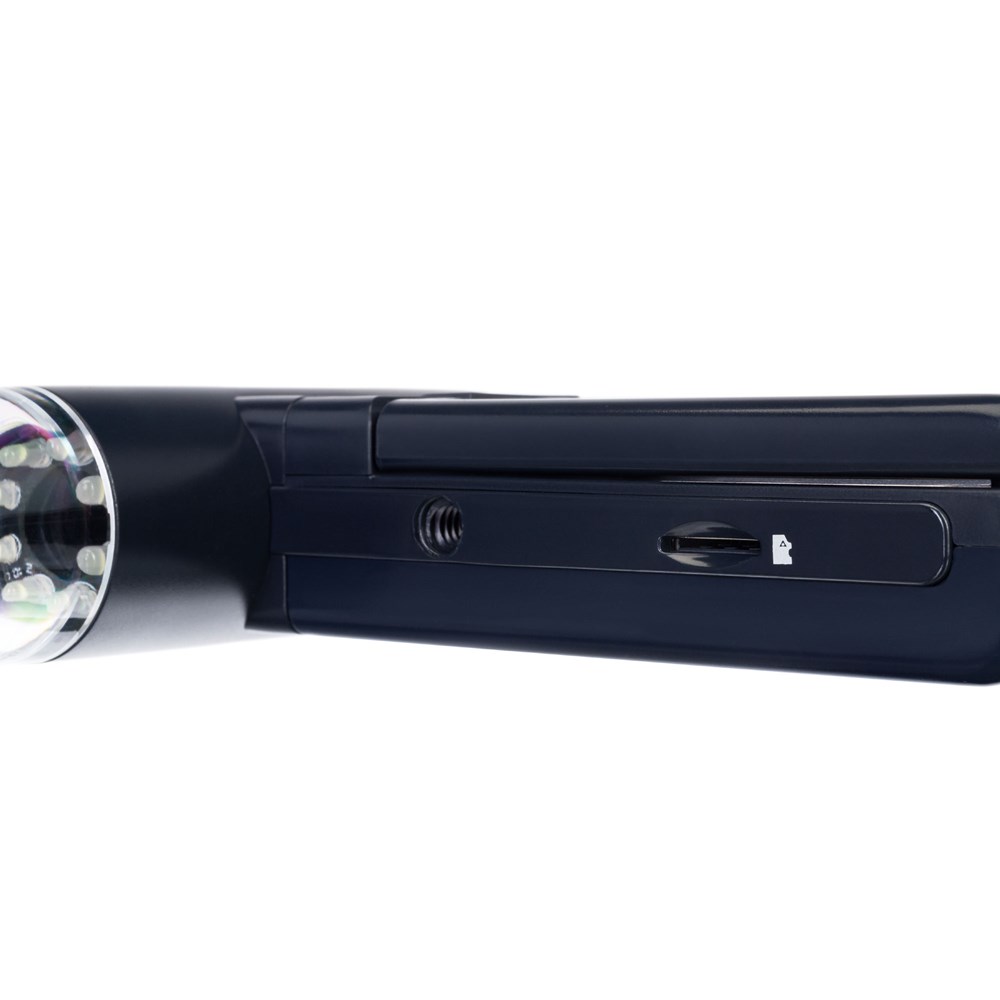 • Небольшой и легкий цифровой микроскоп с ЖК-экраном (диагональ 3 дюйма) • Можно подсоединять к телевизору или компьютеру на базе Windows или Mac OS • Функции фотографирования и видеозаписи, запись на карту памяти microSD • Измерение расстояний, площадей, углов и радиусов наблюдаемых объектов • Увеличение от 20 до 500 крат, ручная настройка фокуса в пределах от 0 до 30 мм • Встроенная 5-мегапиксельная камера с интерполяцией до 12 Мпикс • Верхняя подсветка из 8 белых светодиодов регулируемой яркости • Работает от аккумулятора, может питаться от сети переменного токаКомплектация: