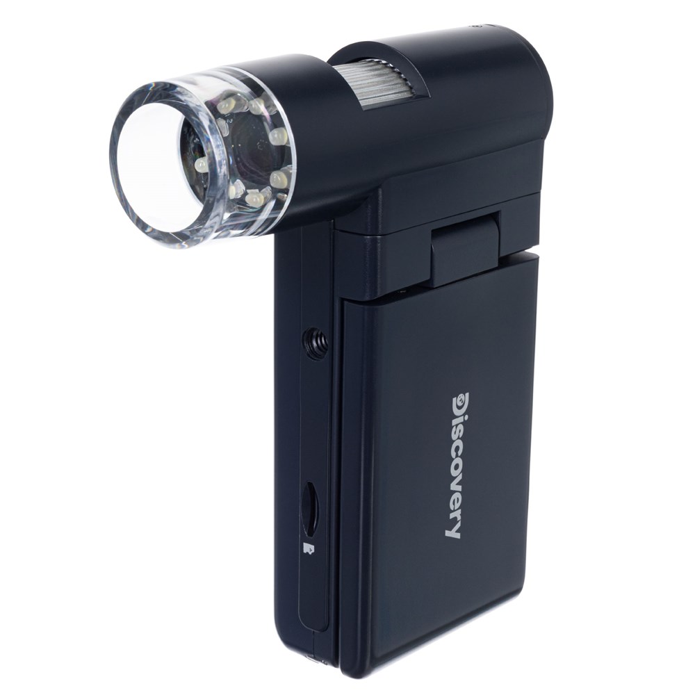 Discovery Channel (Дискавери ченэл) – всемирно известный научно-популярный телеканал о науке, технологиях, исследованиях и приключениях. Захватывающее сочетание историй разных жанров помогает взглянуть под разными углами на людей, места, организации и события, которые формируют наш мир. Discovery вдохновляет миллионы людей во всем мире, предлагая возможность открыть новое и утолить жажду познания. Мы с гордостью представляем серию оптики Discovery, произведенную Levenhuk при поддержке Discovery. Портативный цифровой микроскоп Levenhuk Discovery Artisan 256 станет настоящей находкой для тех, кому требуется рабочий инструмент для использования на выезде (вне офиса, лаборатории или мастерской). Это небольшой увеличительный прибор с ЖК-экраном и встроенным аккумулятором, что делает его очень мобильным. К тому же микроскоп можно подключать к компьютеру (на базе Windows или Mac OS) или телевизору (через AV-разъем). Также он позволяет фотографировать, записывать видео и проводить линейные и угловые измерения, в том числе определять площади и радиусы. Микроскоп станет верным помощником нумизмату, мастеру сервисного центра, ювелиру, реставратору и многим другим профессионалам, работающим в разных областях. Портативный микроскоп часто применяют для проверки качества товаров в магазине и наличия плесени на овощах и фруктах. Объектив микроскопа – камера 5 Мпикс с интерполяцией до 12 Мпикс. Рядом с ней расположена подсветка, состоящая из 8 белых светодиодов. Яркость подсветки можно регулировать. Диапазон увеличения микроскопа составляет от 20 до 500 крат, фокусировку можно настраивать в пределах от 0 до 30 мм. Обрезиненная поверхность корпуса микроскопа приятна на ощупь и делает захват более надежным. При необходимости прибор можно устанавливать на небольшой штатив. Для удобства транспортировки микроскопа в комплектацию включен мягкий чехол. Обратите внимание: запись фото и видео ведется на карту памяти (приобретается отдельно).