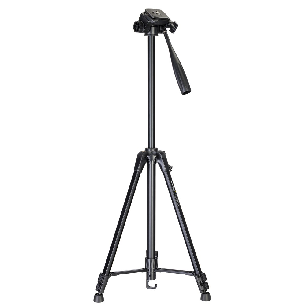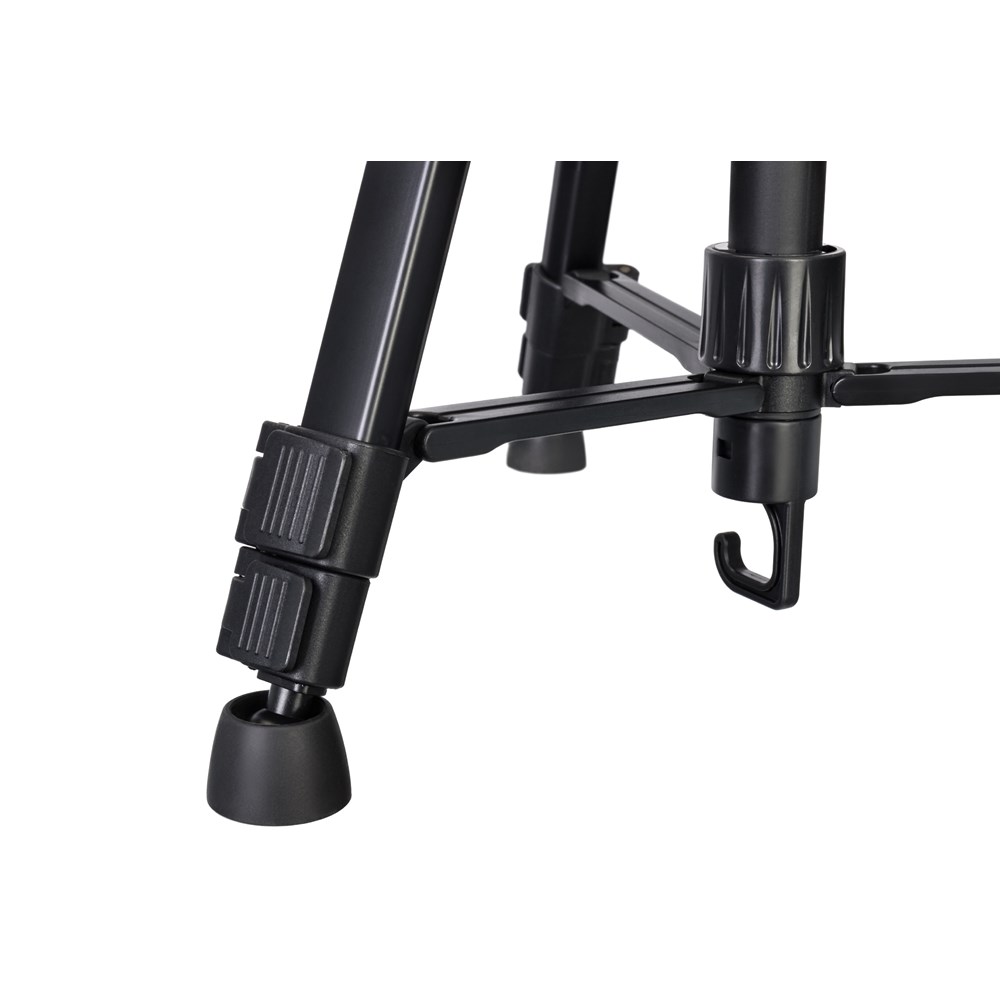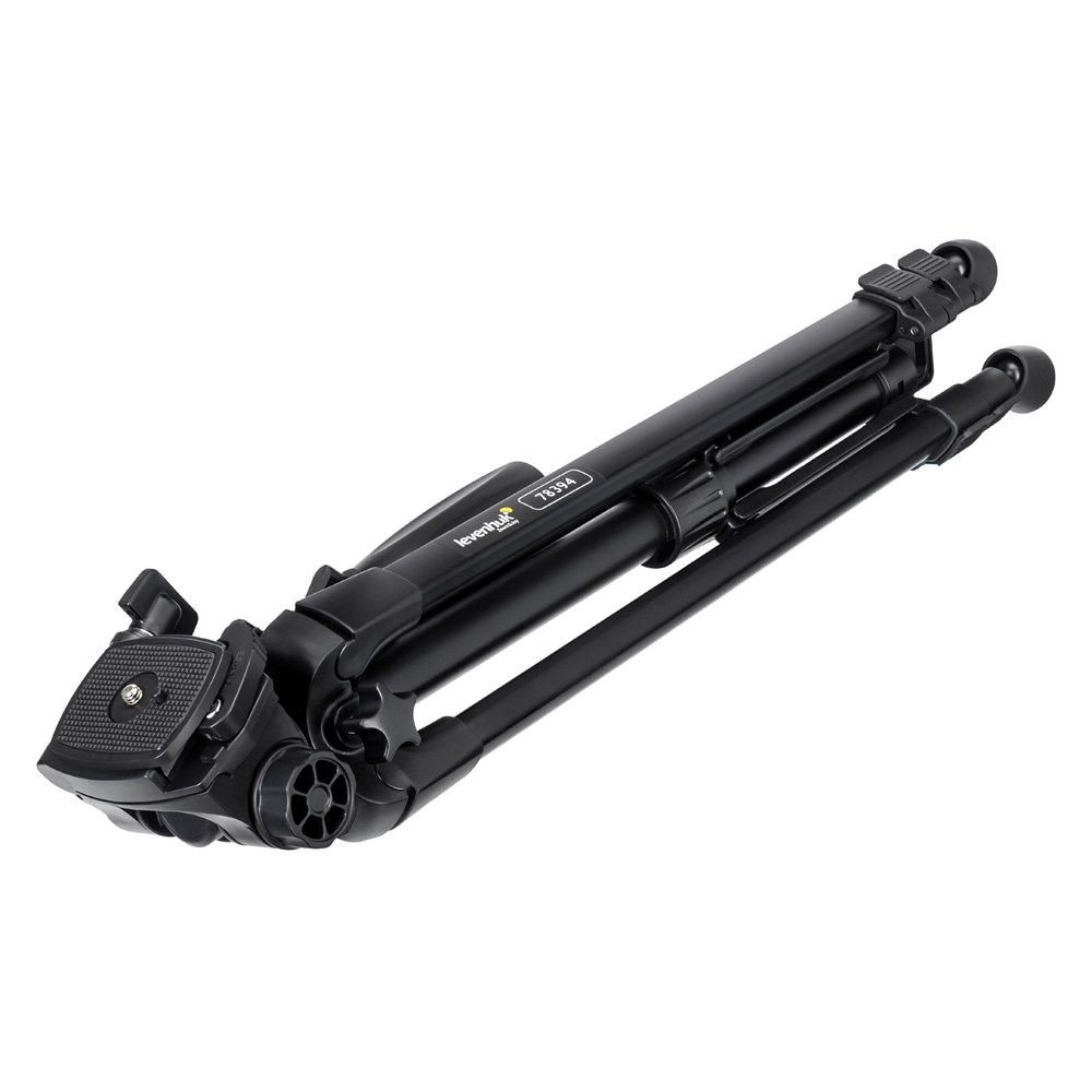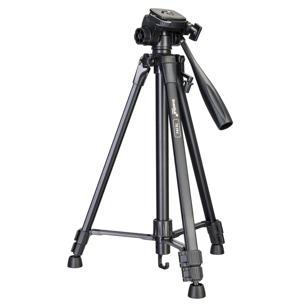 Напольный штатив Levenhuk Level BASE TR20 предназначен для установки техники с креплением 1/4 дюйма. На нем можно фиксировать фото- и видеокамеры, оптические приборы, проекторы, осветители и даже смартфоны. Для установки некоторых из них может понадобиться адаптер-переходник (нет в комплекте). Штатив сделан из металла, долговечен, надежен и достаточно компактен в сложенном состоянии. Это хороший вариант для путешествий и загородных поездок. Штативная головка может поворачиваться на 360° по горизонтали, а также вверх и вниз. Для управления ею используется удобная ручка. Установочная площадка сконструирована таким образом, что технику очень легко быстро крепить и снимать. Если ослабить фиксатор площадки, ее можно будет откинуть вбок на угол до 90°. Фиксаторы также есть на горизонтальной и вертикальной осях. Чтобы отрегулировать высоту штатива, можно или поднять центральную штангу, или выдвинуть ножки. Удобно, что на ножках используются флип-замки для быстрой фиксации положения. На центральной штанге есть крюк, на который можно вешать утяжелитель для повышения устойчивости конструкции. Но нужно помнить, что максимальная нагрузка на штатив ограничена 5 кг. Также удобно, что есть пузырьковый уровень, помогающий устанавливать штатив максимально ровно в любых условиях. В комплектацию включен чехол для хранения и транспортировки штатива.