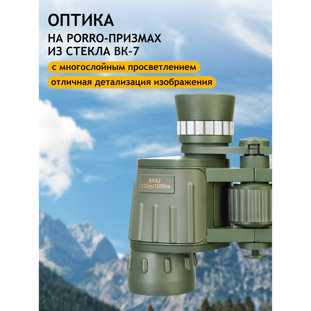 • Porro-бинокль с самым широким полем зрения в серии Field • Оптика из стекла BK-7, несколько слоев просветления • Удобный текстурированный барабан центральной фокусировки • Обрезиненное покрытие защищает от влаги и не скользит в руках • Возможность подстраивать диоптрии и наблюдать со штативаКомплектация: