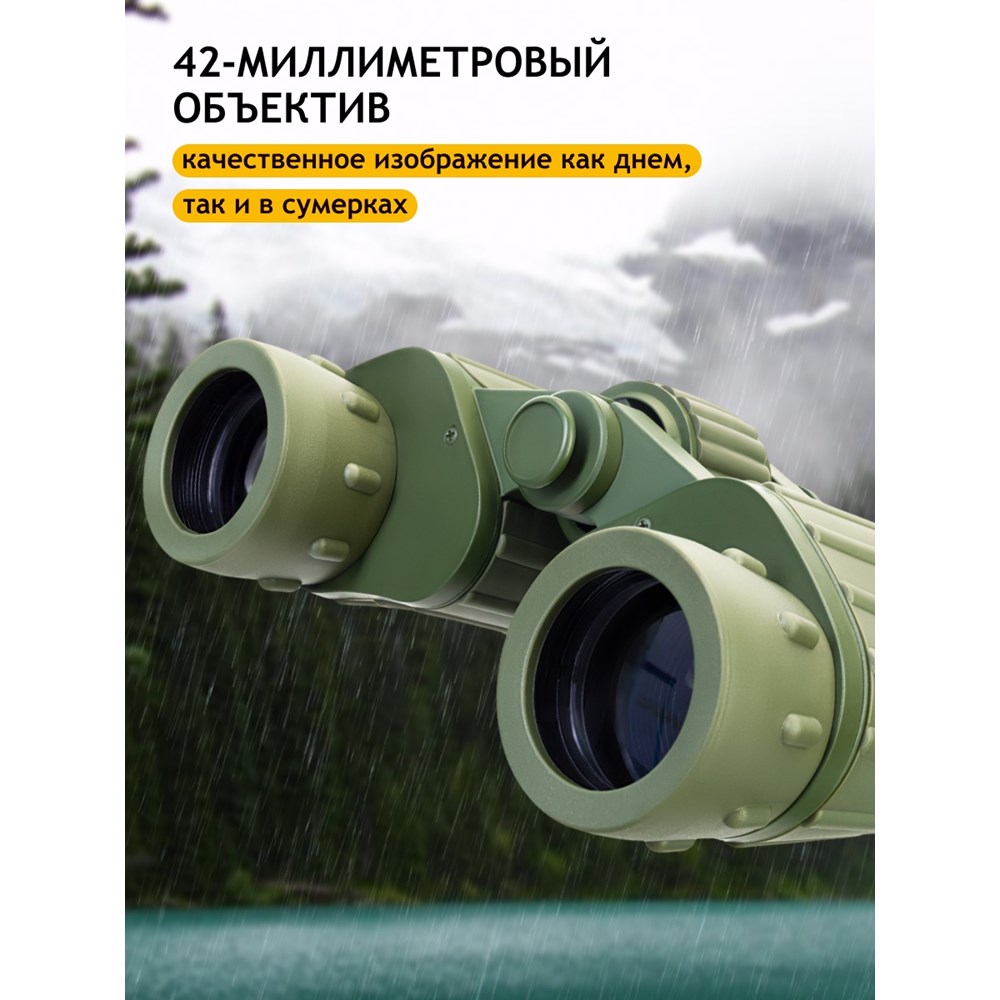 Discovery Channel (Дискавери ченэл) – всемирно известный научно-популярный телеканал о науке, технологиях, исследованиях и приключениях. Захватывающее сочетание историй разных жанров помогает взглянуть под разными углами на людей, места, организации и события, которые формируют наш мир. Discovery вдохновляет миллионы людей во всем мире, предлагая возможность открыть новое и утолить жажду познания. Мы с гордостью представляем серию оптики Discovery, произведенную Levenhuk при поддержке Discovery. Levenhuk Discovery Field 8x42 – защищенный от влаги полевой бинокль, который высоко оценят любители походов, охоты, экспедиций и активного образа жизни. В своей линейке прибор отличается самым широким полем зрения – а значит, с его помощью удобно обозревать открытые пространства, прокладывать маршруты и решать другие наблюдательные задачи. Увеличенное в 8 раз изображение получается ярким, контрастным и сбалансированным благодаря многослойному просветляющему покрытию на линзах. Материалом оптики послужило стекло BK-7, за основу оптической схемы взяты призмы Porro. Бинокль Levenhuk Discovery Field 8x42 прост в настройке и позволяет подстроить оптику под персональные особенности зрения. Есть функция корректировки диоптрий, резкость настраивается с помощью барабана по центру. Предусмотрено резьбовое крепление для установки на штатив. Оптика и механика прибора защищены от попадания влаги и пыли благодаря обрезиненному внешнему покрытию, а его рельефная текстура улучшает захват. Сам корпус сделан из пластика, поэтому бинокль выгодно отличается от многих других полевых моделей меньшим весом. Такой оптический помощник не обременит при длительном пешем переходе.
