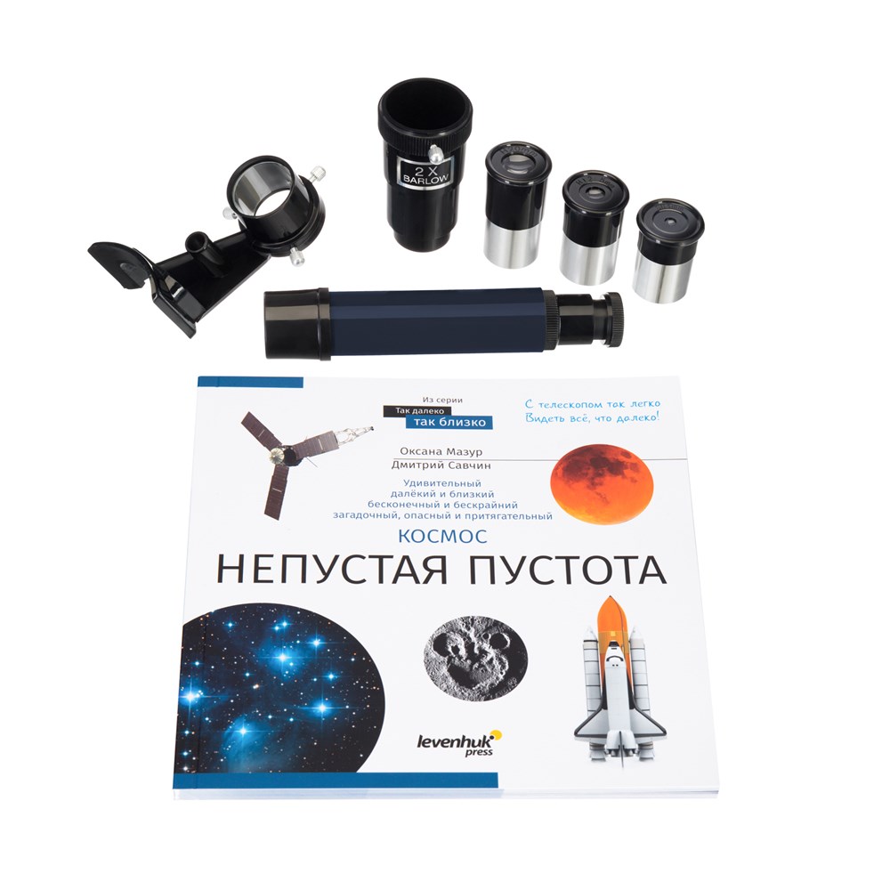 Discovery Channel (Дискавери ченэл) – всемирно известный научно-популярный телеканал о науке, технологиях, исследованиях и приключениях. Захватывающее сочетание историй разных жанров помогает взглянуть под разными углами на людей, места, организации и события, которые формируют наш мир. Discovery вдохновляет миллионы людей во всем мире, предлагая возможность открыть новое и утолить жажду познания. Мы с гордостью представляем серию оптики Discovery, произведенную Levenhuk при поддержке Discovery. Всем, кто мечтает увидеть своими глазами дальний космос, подойдет рефлектор Levenhuk Discovery Spark 769 EQ – простой в обращении телескоп на экваториальной монтировке. С его помощью можно рассматривать галактики, туманности, звездные скопления и другие объекты Мессье. Ближний космос тоже не обойден вниманием – для наблюдений доступны Луна и Солнечная система. В комплекте есть яркая познавательная книга «Космос. Непустая пустота» – отличное подспорье для начинающего астронома, которое поможет узнать больше о небесных телах, наблюдаемых в телескоп. Ключевой элемент оптической схемы телескопа Levenhuk Discovery Spark 769 EQ – главное зеркало сферической формы. Оптические элементы выполнены из стекла со специальным антибликовым покрытием, которое совершенствует светопропускание системы и качество картинки. Астрономические объекты просматриваются ясно и отчетливо по всему полю зрения. Наведение выполняется с помощью экваториальной монтировки, дополненной ручками тонких движений. Она позволяет вести объект по небосклону, не упуская его из виду. Прибор комплектуется устойчивой алюминиевой треногой с регулировкой высоты ножек. В центре треноги имеется лоток для аксессуаров, на котором можно разместить окуляры, линзу Барлоу и другие аксессуары. Все необходимое для быстрого старта наблюдений уже включено в комплект. Еще одно преимущество модели – яркая упаковочная коробка. Это готовый подарок для человека, увлеченного космосом.