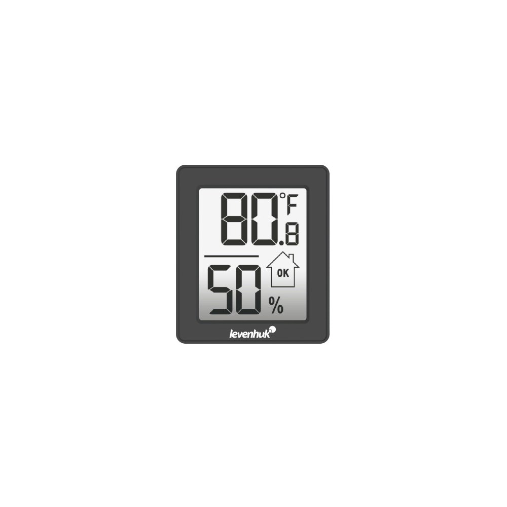 Термогигрометр Levenhuk Wezzer BASE L10 – компактный прибор для дома, который поможет контролировать основные параметры микроклимата – температуру и влажность. Он пригодится и в поездке благодаря своему портативному характеру: для работы достаточно одной батарейки. Гаджет не перегружен функциями – это простая базовая модель для измерения ключевых показателей. С ним вы всегда будете в курсе точных значений температуры и влажности дома, сможете избежать образования плесени или, наоборот, узнать о необходимости в увлажнении воздуха. Помимо текущих температуры и влажности, на экран Levenhuk Wezzer BASE L10 выводится индикатор комфорта. Он будет принимать разные значения в зависимости от уровня влажности воздуха: «LOW» (Снижена, 10–39%), «OK» (Комфортная, 40–75%) и «HIGH» (Повышена, 76–99%). Термогигрометр можно установить на столе с помощью откидной подставки или повесить на стену. На задней стенке есть магнитное крепление – это позволяет закрепить прибор на дверце холодильника.