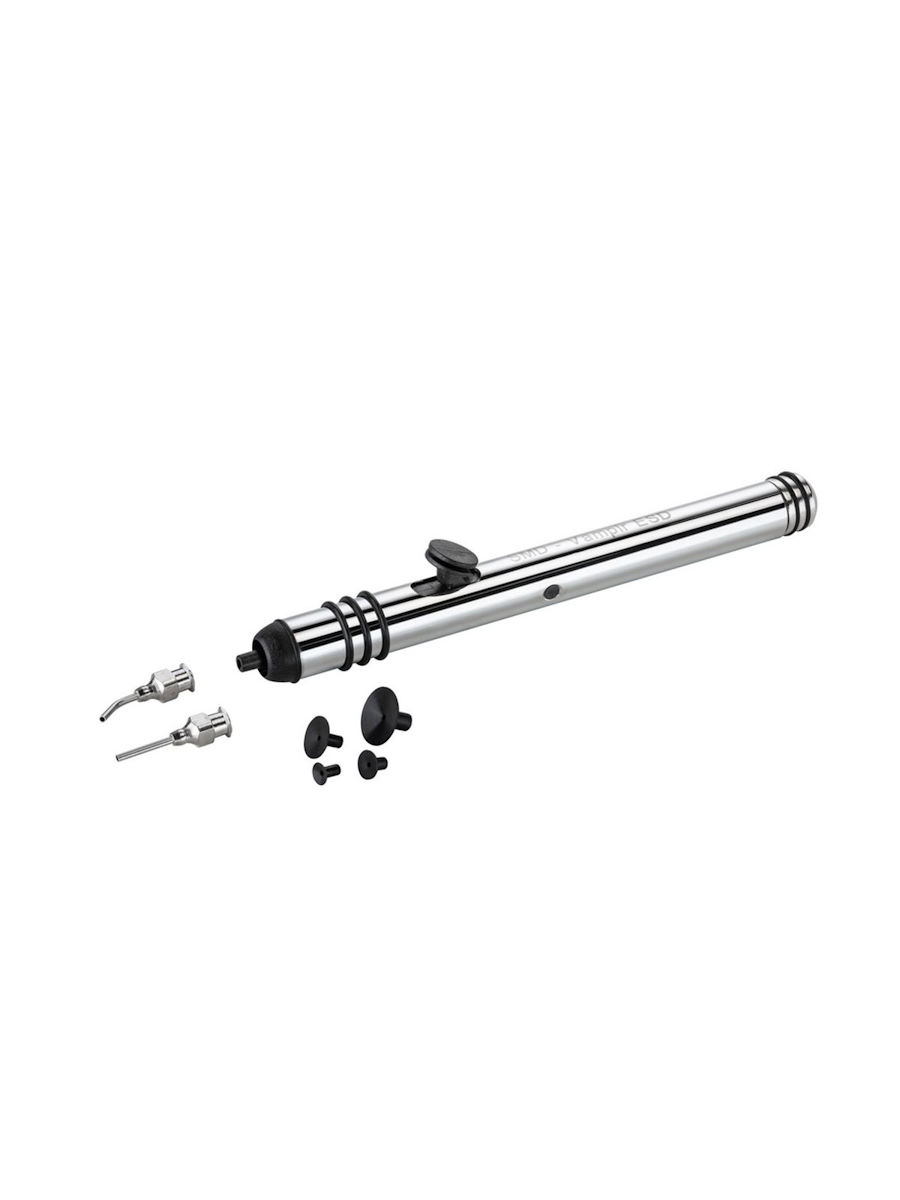 Вакуумная захват состоит из тонкой полой трубки с наконечником на одном конце, который помещается на компонент. Вакуум создается легким нажатием кнопки большим пальцем. Компонент можно всасывать и затем точно размещать. Проводящие присоски предотвращают электростатический заряд во время процесса захвата и размещения.