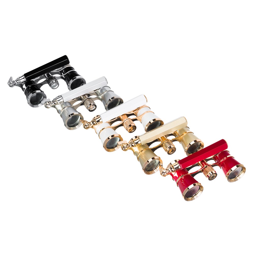 Изящный бинокль-лорнет Levenhuk Broadway 325E прекрасно подойдет тем, кто часто ходит в театр. Он обладает стильным внешним видом и имеет оптимальные технические характеристики для наблюдений внутри помещения. Модель обеспечивает 3-кратное приближение, качественная оптика формирует светлую и детализированную картинку в условиях слабой освещенности. Бинокль порадует обладателя сравнительно широким полем зрения и малой дистанцией ближней фокусировки (3,5 метра). Элегантный черный корпус с броскими золотыми элементами подойдет к любому наряду. Театральный бинокль Levenhuk Broadway 325E произведен по галилеевской схеме, материалом линз здесь выступает высококачественное оптическое стекло BaK-4. На поверхность оптических элементов нанесено полное многослойное просветление. Конструкция прибора продумана до мелочей: в центре расположен небольшой фокусировочный барабанчик, сбоку крепится откидная ручка с регулируемой длиной. При необходимости можно быстро и просто изменять расстояние между окулярами.