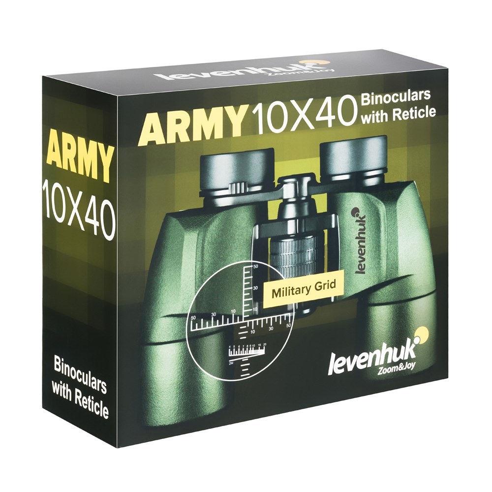 Porro-бинокль Levenhuk Army 10x40 дополнен двумя измерительными шкалами в окуляре – это отличное решение для наблюдений и измерений на открытых пространствах. Возможности оптического прибора понравятся охотникам, любителям туризма, а также всем, кто ведет профессиональные наблюдения, – например, охранные или геодезические. Бинокль дает возможность рассматривать ландшафт на 10-кратном приближении, а для измерения доступны такие параметры, как высота объектов, расстояние до них, вертикальные и горизонтальные углы. Все оптические поверхности бинокля Levenhuk Army 10x40 сделаны из стекла BaK-4 и многократно просветлены, что хорошо сказывается на яркости и контрастности картинки, повышая ее читаемость. Наведение на резкость выполняется с помощью рельефного барабана центральной фокусировки. Подстроить оптику под индивидуальные особенности зрения помогают выдвижные наглазники, положение которых можно менять, и окулярное кольцо диоптрийной коррекции. Долговечный алюминиевый корпус защищен от проникновения воды и заполнен азотом во избежание запотевания стекол. Благодаря обрезиненной поверхности бинокль не выскальзывает из рук, а для долгих наблюдений его можно установить на штатив со стандартным креплением 1/4".