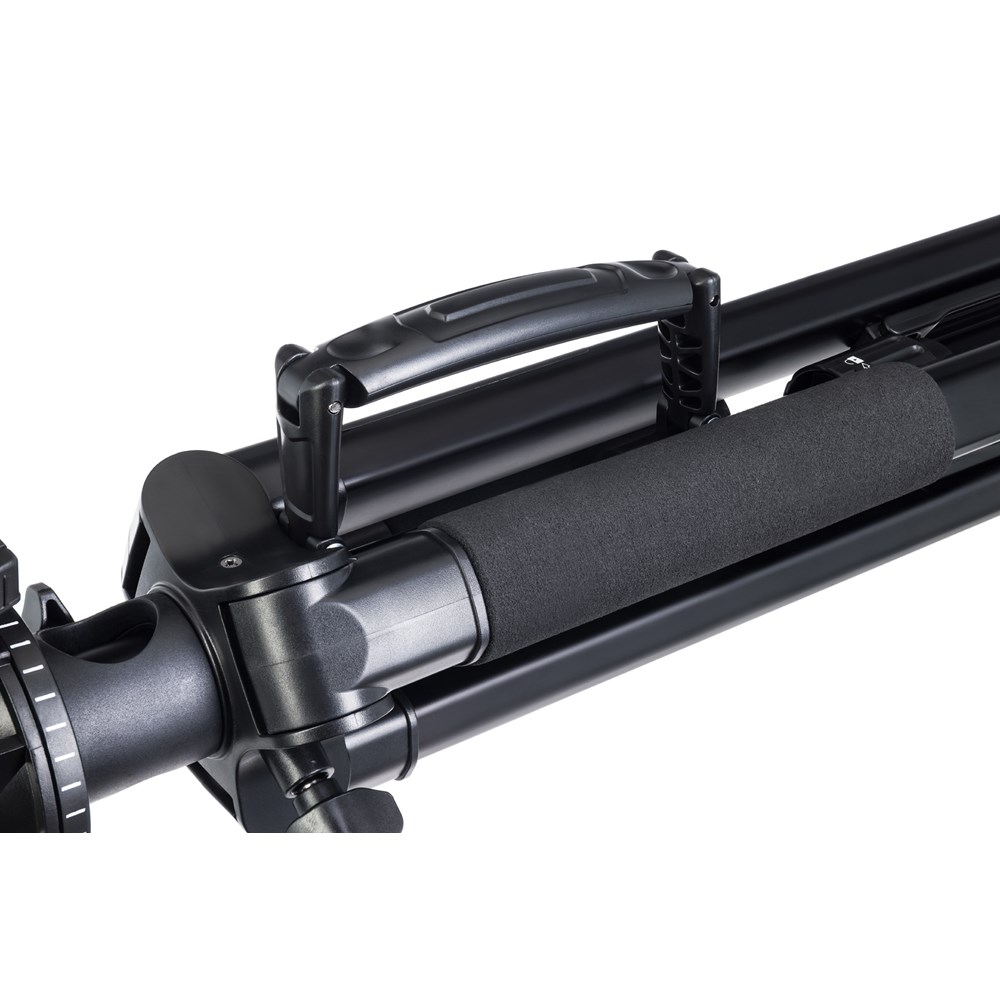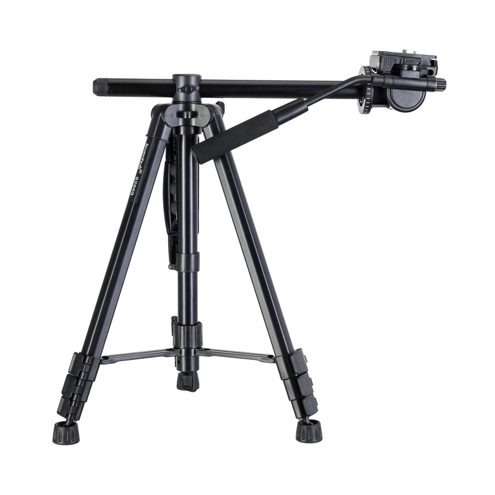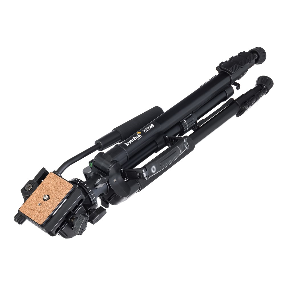 Штатив Levenhuk Level PLUS VT15 предназначен для установки оборудования весом до 5 кг, имеющего стандартную резьбу 1/4 дюйма. Он подойдет как для установки съемочной аппаратуры, так и наблюдательной оптики, а также света или проекторов. Для некоторых приборов может понадобиться адаптер, которого нет в комплекте поставки. Центральный сегмент штатива можно использовать самостоятельно – в качестве монопода, а также как горизонтальное крепление для съемки сверху вниз. Штатив регулируется по высоте (для этого меняется высота ножек и выдвигается центральная штанга), а флип-замки надежно фиксируют его, гарантируя устойчивость. Ножки штатива прорезины – он не будет скользить по полу. Конструкцию можно дополнительно стабилизировать с помощью груза – для этого предусмотрен специальный крюк. Встроенный пузырьковый уровень поможет правильно оценить, насколько ровно установлена конструкция. Поворотная головка даст возможность пользователю подобрать идеальный угол расположения прибора, исходя из стоящих перед ним задач, а быстросъемная площадка облегчит и ускорит смену оборудования на штативе. Наклон и поворот прибора осуществляются с помощью ручки после его крепления на фиксаторе. Штатив отличается малым весом и довольно компактен в сложенном состоянии: такой аксессуар можно брать с собой на выездные съемки или в длительные путешествия. Для удобства транспортировки в комплект входит специальный чехол.