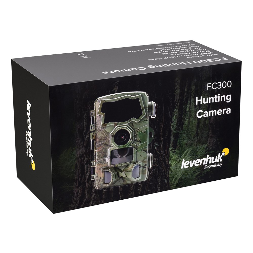 Фотоловушка Levenhuk FC300 – это наружная камера, предназначенная для дневной и ночной съемки и, в первую очередь, востребованная у охотников. Она обеспечивает их фото и видеоматериалом, с помощью которого можно оценить перспективность того или иного участка, выбранного для охоты, зафиксировав появление животных. Ночью съемка ведется в монохромном режиме, подсветка осуществляется инфракрасным светом 850 нм, который большинство животных почти не воспринимают зрительно. Эта камера отличается широким полем зрения 110° и высоким разрешением фото и видео, а значит, она формирует четкое и информативное изображение и днем, и ночью. Параметры чувствительности датчиков, интервал срабатывания камеры и длину видео можно настроить. Для хранения отснятых материалов камера укомплектована картой памяти 32 ГБ (можно установить карту и с большим объемом памяти – до 512 ГБ). Так как камера предназначена для установки на улице, она приспособлена как к высоким, так и к низким температурам в диапазоне от −20 до +50 °С и защищена от проникновения влаги. Камера работает от 4 или 8 батареек типа АА, но может быть подключена и к внешнему источнику питания. Набор комплектных креплений предусматривает установку фотоловушки на стволе дерева или стене.