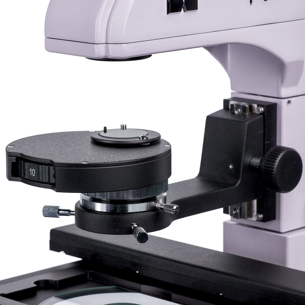 MAGUS Lum V500 – это инвертированный люминесцентный микроскоп, используемый для работы в свете видимой люминесценции (отраженный свет), а также в светлом поле и по методу фазового контраста (проходящий свет). Микроскоп позволяет исследовать образцы, помещенные в лабораторную посуду – чашки Петри, колбы и проч. Высота посуды может достигать 55 мм, а при отклонении штатива – 165 мм. Оптика скорректирована на толщину дна посуды, равную 1,2 мм. Возможности микроскопа подходят для решения задач специалистов, работающих в медицинской, фармакологической, биохимической и других сферах науки. Оптическая схема На микроскопе установлена классическая тринокулярная насадка. Окулярные тубусы можно поворачивать на 180°, чтобы адаптировать высоту взора под рост пользователя. Каналов визуализации два: один расположен на насадке и имеет деление светового потока 100/0 или 50/50, второй находится сбоку на корпусе – световой поток может быть перераспределен как 100/0 или 0/100. Таким образом, на микроскоп можно установить одновременно и цифровую камеру, и монитор (не включены в комплект). Комплектация включает объективы-планахроматы с корректировкой на бесконечность: три объектива предназначены для исследований в светлом поле и по методу люминесценции, еще три – для фазово-контрастной микроскопии. Все объективы могут быть одновременно установлены на микроскоп, так как револьверное устройство имеет шесть свободных гнезд. Револьвер находится на штативе, под предметным столиком. Система освещения Для отраженного света применяется 100-ваттная ртутная лампа, находящаяся в фонаре. Так как фонарь эффективно отводит тепло, то повышенное тепловыделение лампы не оказывает негативного влияния на процесс исследований. Освещение ртутной лампой яркое, охватывает широкий спектр, подходит для работы с разными флуоресцентными красителями. Для люминесценции используются четыре фильтра: ультрафиолетовый (UV), фиолетовый (V), синий (B), зеленый (G). Источником проходящего света является галогенная лампа 30 Вт. Она создает «теплое» освещение, приятное для глаз и оптимально подходящее для длительной работы. Яркости освещения хватает для работы на каждом объективе. Фазово-контрастный конденсор, установленный на микроскопе, обеспечивает быструю и удобную смену метода исследования. Одно положение вращающегося диска соответствует свободному отверстию – это режим светлого поля. Три других положения предназначены для фазово-контрастного метода исследований на объективах 10х, 20х и 40х соответственно. Фазовые кольца центрируются. В отраженном и проходящем свете можно проводить настройку освещения по методу Кёлера. Благодаря этому можно получить изображение в максимальном разрешении на каждом объективе, убрать из него ложные артефакты и виньетирование. Механика Конструкция предметного столика подразумевает установку держателей чашек. В комплекте их четыре – каждый имеет свой размер. Перемещать посуду можно в двух направлениях по горизонтали, сам столик при этом остается неподвижным. Настройка фокуса проводится грубо и тонко – рукоятки расположены коаксиально с двух сторон штатива микроскопа. Ход грубой фокусировки может быть отрегулирован или заблокирован. Аксессуары Чтобы получить от микроскопа максимум, используйте дополнительные аксессуары: объективы, окуляры, цифр