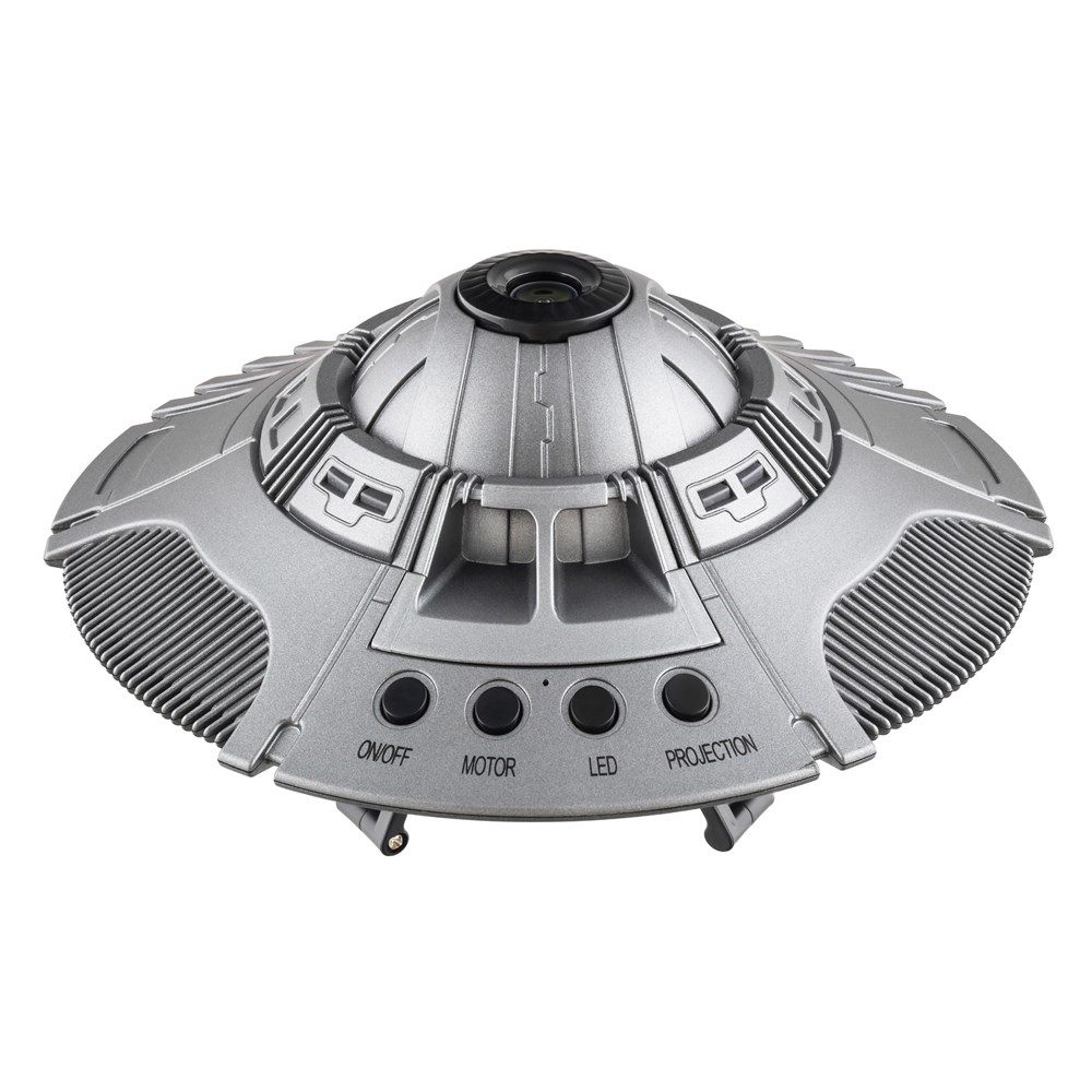 Небольшой астропланетарий в виде НЛО днем будет украшением интерьера, а вечером поможет ребенку расслабиться после школьных занятий и позволит понаблюдать за красотами космоса. В комплекте идут проекционные диски (слайды) с изображениями галактики Млечный Путь, планеты, черной дыры и других космических объектов. Проектор дает яркое изображение, уровень яркости подсветки можно менять. Есть два режима работы светодиодов: один цвет или плавная смена цветов. Изображение проецируют на потолок или на стену, площадь проекции – 30 квадратных метров. С помощью отдельной кнопки запускают вращение проекции, двукратным нажатием на кнопку меняют направление вращения. В астропланетарии Levenhuk LabZZ SP50 НЛО предусмотрена ручная настройка резкости с помощью фокусировочного колеса на корпусе. В комплект также входит пульт управления с питанием от батареек (не поставляются с устройством). Планетарий питается от сети через кабель USB длиной 1,8 м и адаптер питания (входят в базовую комплектацию). Можно не выключать устройство перед сном, а установить автоотключение через 45 или 90 минут. Устройство имеет складные ножки для установки на ровную поверхность.