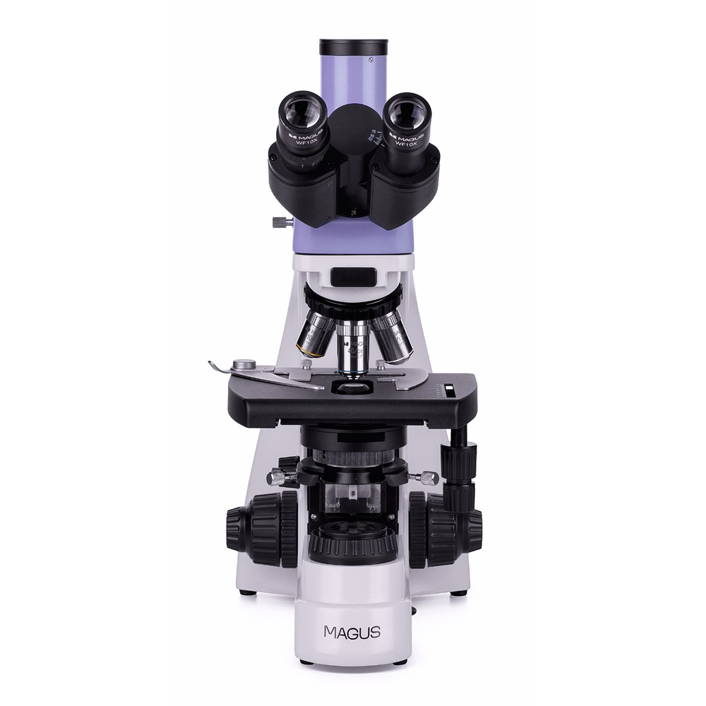 Микроскоп предназначен для наблюдения прозрачных и полупрозрачных биологических образцов в виде мазков и срезов в проходящем свете в светлом поле. Установка опциональных компонентов позволит использовать методы темного поля, фазового контраста и поляризации. Микроскоп подходит для рутинной лабораторной работы, научных исследований, обучения. Цифровая камера Цифровая камера MAGUS CDF10 разработана для работы по методам светлого и темного поля. Она отличается низким уровнем шума и высокой светочувствительностью. Камера оснащена сенсором 2 Мпикс и формирует реалистичное изображение в разрешении Full HD (1920x1080 пикс) при работе на объективах 40х, 60х и 100х. Видеозапись ведется с частотой 125 кадров в секунду при максимальном разрешении. Видео плавные, с мягкими и незаметными глазу переходами между кадрами. Передвижение препарата отображается в реальном времени, без задержек. Камера обеспечивает удобную работу с подвижными объектами, подходит для проведения демонстраций в аудитории. Камера оснащена интерфейсом USB 3.0. Скорость передачи данных в 10 раз выше, чем у камер с интерфейсом USB 2.0. Высокоскоростная камера рекомендуется для профессиональной работы в лаборатории, исследований или обучения в вузах. Визуальная насадка Тринокулярная визуальная насадка с оптикой, рассчитанной на бесконечность. Тубусы насадки вращаются на 360°. Пользователь выбирает высоту выноса зрачка в соответствии с собственным ростом. Цифровая камера устанавливается в вертикальный тубус с каналом визуализации. Револьверное устройство Револьвер на 5 объективов. Свободное гнездо револьвера для установки дополнительного объектива, который позволит получить еще одно увеличение внутри диапазона кратности. Револьвер повернут «от наблюдателя»: пользователь видит объектив, который ввел в ход лучей, пространство над столиком свободно. Фокусировка Коаксиальные рукоятки грубой и тонкой фокусировки расположены в нижней части корпуса с двух сторон штатива. Пользователь свободно кладет руки на стол и занимает расслабленную позу во время работы. Настройка фокуса происходит плавно и без усилий. Предметный столик У столика отсутствует выдвижная зубчатая рейка по оси Х, что повышает эргономичность работы. Механизм с ременной передачей плавно перемещает объект. Препаратодержатель крепится двумя винтами, при быстром ручном сканировании его можно снять. Конденсор Аббе Конденсор имеет слот для установки слайдера темного поля или слайдера фазового контраста. Установка слайдера экономит время при переключении с одного метода исследования на другой. Источник света Галогенная лампа излучает теплые тона, привычные для глаз. Замена лампы требует минимум усилий. 30-ваттная лампа излучает достаточную яркость для работы на всех объективах по методу светлого поля, темного поля и фазового контраста. Аксессуары Для микроскопа разработана линейка аксессуаров: окуляры, объективы, устройства для работы по методу темного поля, фазового контраста и поляризации, цифровые камеры, калибровочные слайды. Основные особенности микроскопа: • Тринокулярная насадка с вертикальным тубусом для установки цифровой камеры и изменением высоты взора • Осветитель – мощная галогенная лампа 30 Вт для яркого естественного освещения • Эргономичная конструкция для удобства длительной работы • Ш