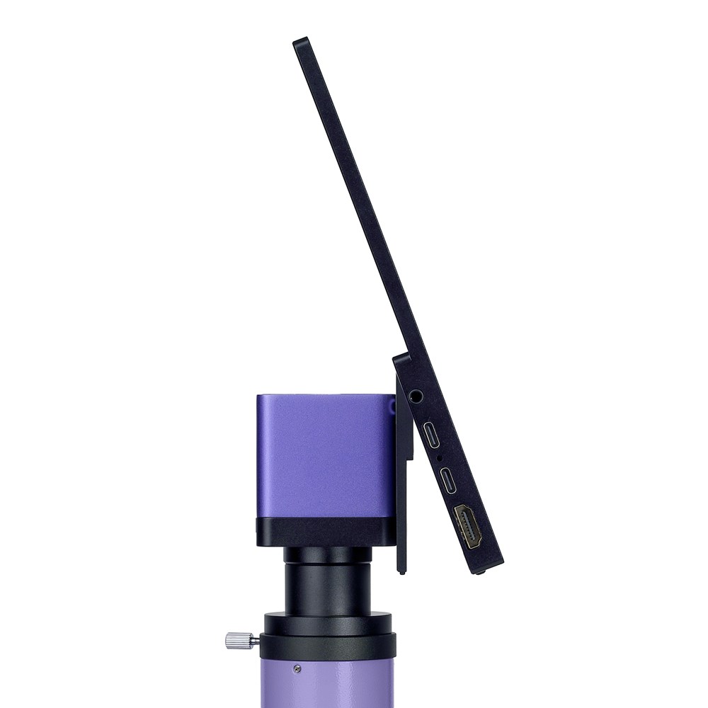 Микроскоп предназначен для наблюдения прозрачных и полупрозрачных биологических образцов в виде мазков и срезов в проходящем свете в светлом поле. Установка опциональных компонентов позволит использовать методы темного поля, фазового контраста и поляризации. Микроскоп подходит для рутинной лабораторной работы, научных исследований, обучения. Цифровая камера Цифровая HDMI-камера MAGUS CHD10 оснащена сенсором 2 Мпикс и формирует реалистичное изображение в разрешении Full HD (1920x1080 пикс). Камера автономная, не требует подключения к компьютеру и установки дополнительных программ. Для получения изображения камеру присоединяют непосредственно к телевизору, монитору или проектору. Интерфейс HDMI обеспечивает высокую и стабильную скорость передачи информации от камеры к внешнему экрану. Видеозапись ведется с частотой 60 кадров в секунду. Камера сочетает в себе большое значение FPS и высокую пропускную способность интерфейса HDMI, поэтому видео ощущаются «живыми», нет зависаний и разрывов между кадрами. На максимальном разрешении изображение информативно, движущиеся объекты видны без шлейфов, передвижение объекта отображается без задержек. Монитор Монитор MAGUS MCD20 предназначен для создания системы визуализации микроскопа Magus. Он подключается к установленной на микроскоп камере и выводит изображение в реальном времени. Поддерживаются HDMI-камеры MAGUS, работающие в разрешении Full HD. Диагональ экрана – 13,3 дюйма. Матрица IPS обеспечивает яркую картинку с широкими углами обзора: если смотреть на монитор под углом, цветопередача не искажается. Монитор устанавливается на стол или полку на откидную подставку или крепится напрямую к камере или к штативу. Визуальная насадка Тринокулярная визуальная насадка с оптикой, рассчитанной на бесконечность. Тубусы насадки вращаются на 360°. Пользователь выбирает высоту выноса зрачка в соответствии с собственным ростом. Цифровая камера устанавливается в вертикальный тубус с каналом визуализации. Револьверное устройство Револьвер на 5 объективов. Свободное гнездо револьвера для установки дополнительного объектива, который позволит получить еще одно увеличение внутри диапазона кратности. Револьвер повернут «от наблюдателя»: пользователь видит объектив, который ввел в ход лучей, пространство над столиком свободно. Фокусировка Коаксиальные рукоятки грубой и тонкой фокусировки расположены в нижней части корпуса с двух сторон штатива. Пользователь свободно кладет руки на стол и занимает расслабленную позу во время работы. Настройка фокуса происходит плавно и без усилий. Предметный столик У столика отсутствует выдвижная зубчатая рейка по оси Х, что повышает эргономичность работы. Механизм с ременной передачей плавно перемещает объект. Препаратодержатель крепится двумя винтами, при быстром ручном сканировании его можно снять. Конденсор Аббе Конденсор имеет слот для установки слайдера темного поля или слайдера фазового контраста. Установка слайдера экономит время при переключении с одного метода исследования на другой. Источник света Светодиод 3 Вт обеспечивает постоянство цветовой температуры при изменении яркости. Срок службы светодиода – 50 000 часов. Аксессуары Для микроскопа разработана линейка аксессуаров: окуляры, объективы, устройства для работы по методу темного поля, фазового контраста и 