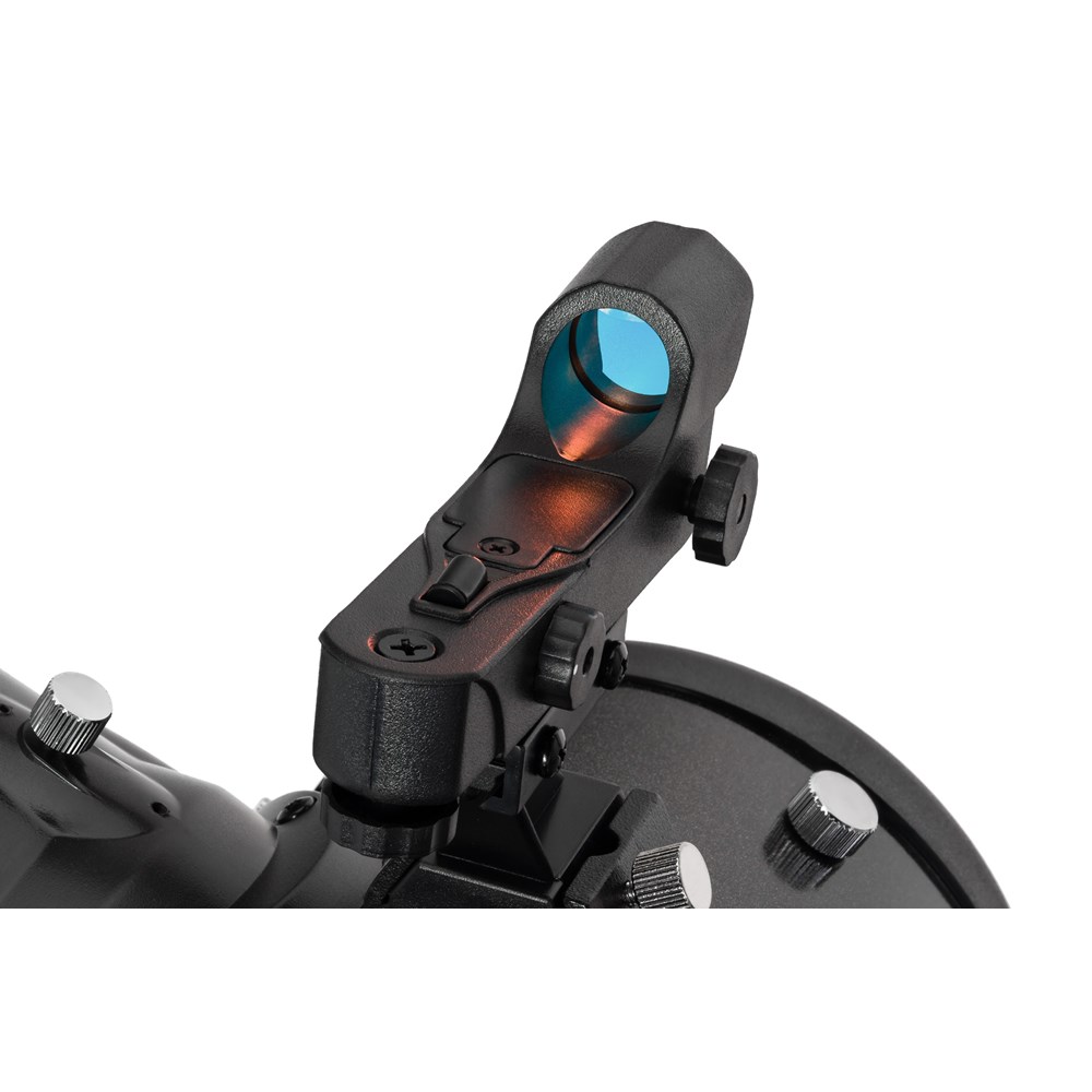 • Зеркально-линзовая оптическая конструкция, главное зеркало – парабола • Главное и вторичное зеркала защищены алюминиево-кварцевым покрытием для повышения светоотражения до 94% • Монтировка с компьютерным наведением и управлением из мобильного приложения SynScan • База координат для 10 000 астрономических объектов – любой из них телескоп находит на небе самостоятельно • Стальная тренога, устойчивая и регулируемая по высоте, лоток для аксессуаровКомплектация: