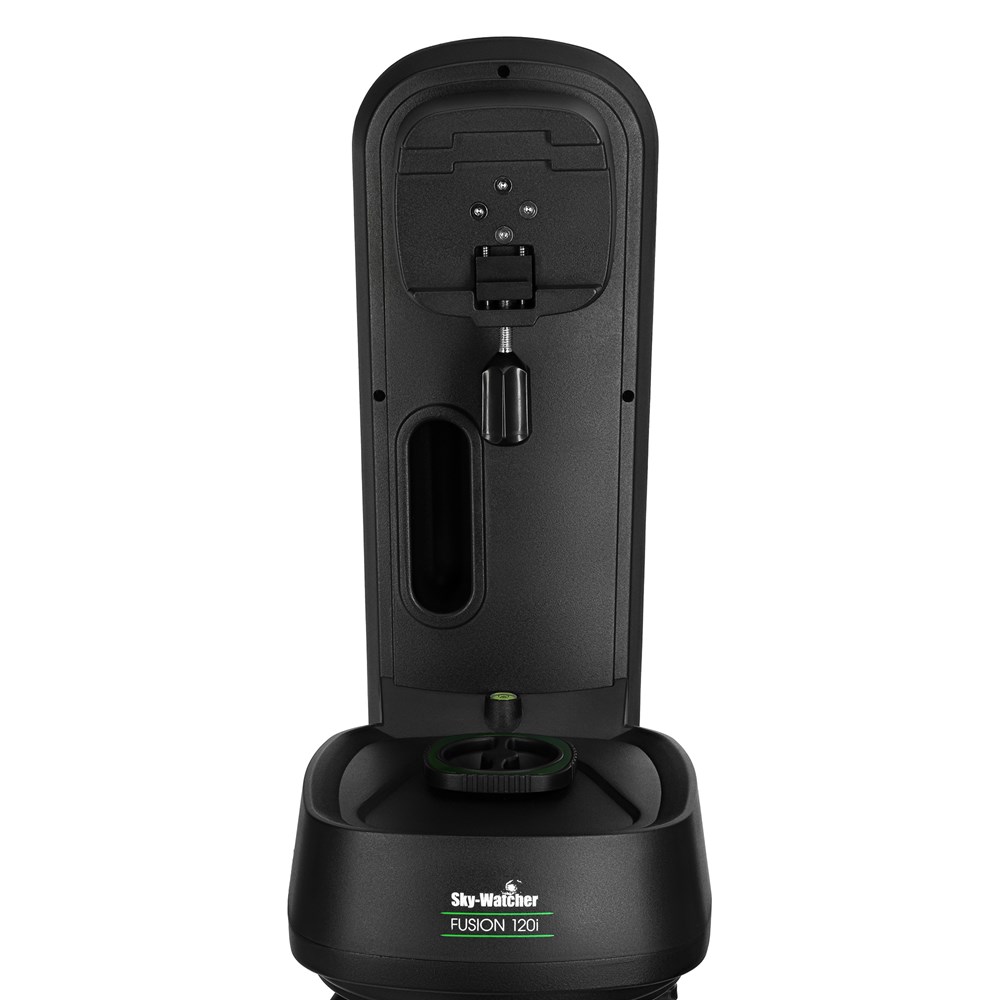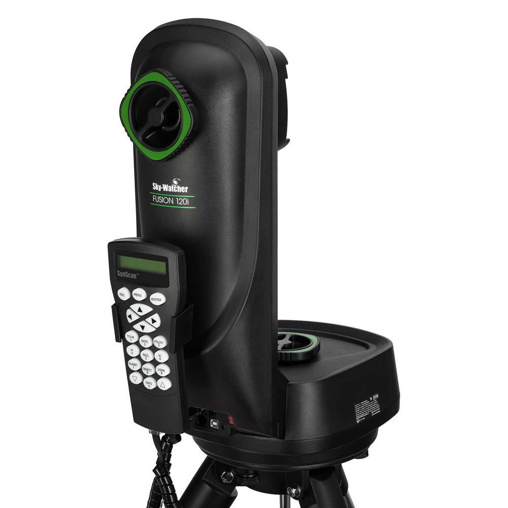 Монтировка Sky-Watcher Fusion 120i – это современный инструмент для занятий астрономией, созданный для облегчения ведения наблюдений за звездным небом и космическими объектами, помогающий настраиваться на нужные небесные тела просто и быстро – благодаря системе автоматического наведения SynScan GOTO. Система включает базу данных с более чем 40000 наименований из 9 астрономических каталогов, в ней легко найти именно тот объект, который интересен пользователю. Управление системой происходит через кнопочный пульт SynScan, который подключается к монтировке напрямую, либо через соединение со смартфоном или планшетом по встроенному модулю Wi-Fi. Задача пользователя – выбрать объект из списка, а наведение на него система произведет самостоятельно. Монтировку Sky-Watcher Fusion 120i можно использовать в полевых условиях, на природе, в отсутствие источника постоянного питания, поскольку она укомплектована встроенным литий-ионным аккумулятором. Для упрощенной переноски в корпусе устройства предусмотрена выемка-«ручка». Также в комплект поставки входит прочный штатив-тренога, который позволяет сразу собрать и установить всю конструкцию, с которой предполагается ведение наблюдений за звездным небом – пользователю будет необходимо лишь установить оптическую трубу телескопа и произвести начальную настройку системы. Вес монтировки составляет 8 килограмм. Габариты средние – 33,5х21,4х46,7 сантиметров. Грузоподъемность всей конструкции – 12 килограмм. При установке телескопа и аксессуаров обязательно учитывайте максимально допустимую нагрузку на монтировку, во избежание поломок оборудования.