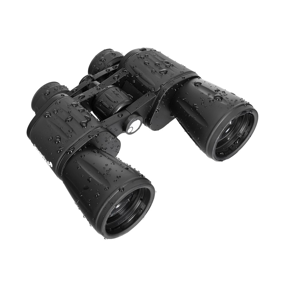 • Мощный бинокль с призмами Порро; диаметр объективов 50 мм, увеличение 20 крат • Материал оптики – боросиликатное стекло марки BK-7, есть полное просветляющее покрытие • Минимальная дистанция фокусировки – 11 м • Фокусировка большим барабаном по центру, настройка диоптрий в пределах ±3 D • Обрезиненный корпус из алюминиевого сплава с рельефными вставками, водозащищенность IPX3 • Установка на штатив с помощью адаптера (не входит в комплектацию)Комплектация:
