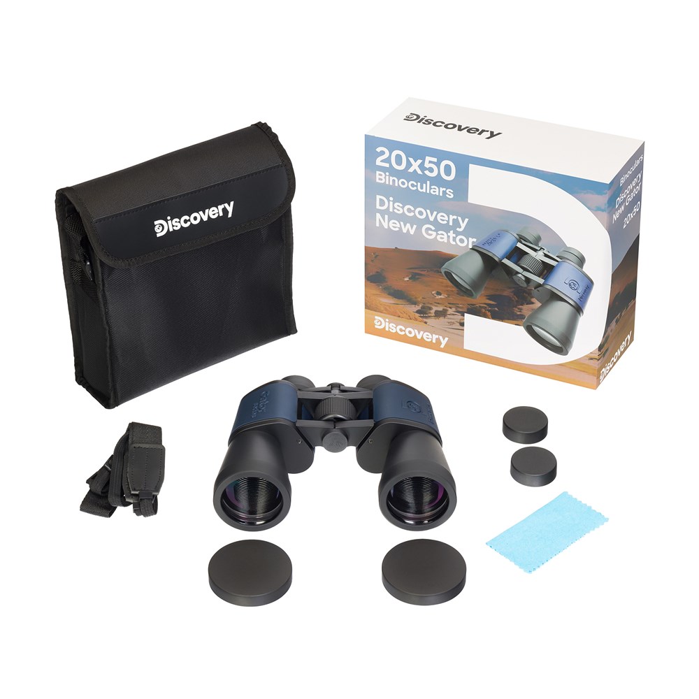 Discovery Channel (Дискавери ченэл) – всемирно известный научно-популярный телеканал о науке, технологиях, исследованиях и приключениях. Захватывающее сочетание историй разных жанров помогает взглянуть под разными углами на людей, места, организации и события, которые формируют наш мир. Discovery вдохновляет миллионы людей во всем мире, предлагая возможность открыть новое и утолить жажду познания. Мы с гордостью представляем серию оптики Discovery, произведенную Levenhuk при поддержке Discovery. Levenhuk Discovery New Gator 20x50 – полевой бинокль с 20-кратным увеличением, с которым вы увидите мельчайшие детали удаленных объектов – сможете рассмотреть птицу на дереве, опознать нарушителя на охраняемой территории, высмотреть дичь с безопасного расстояния. Этому биноклю под силу любые прицельные наблюдения. Бонусом выступает надежная конструкция: корпус выполнен из металла и не боится брызг воды – степень защиты оболочки соответствует маркировке IPX3. Porro-призмы и линзы бинокля сделаны из оптического стекла BK-7. Это базовый стандарт для полевой оптики. Полное просветление линз повышает светопропускающую способность бинокля, поэтому при пасмурной погоде и в сумерках картинка не теряет красок и детализации. Механизм фокусировки расположен в центре бинокля, барабан крупный, с уверенным и плавным ходом. Межзрачковое расстояние регулируется в привычных пределах. На правом окуляре находится кольцо для корректировки диоптрий. Так как увеличение бинокля большое, то при наблюдениях с рук может возникнуть дрожание картинки – это естественная ситуация для высокократных оптических приборов. Рекомендуем устанавливать бинокль на штатив для повышения стабильности изображения. Бинокль совместим с любыми штативами стандарта 1/4 дюйма.