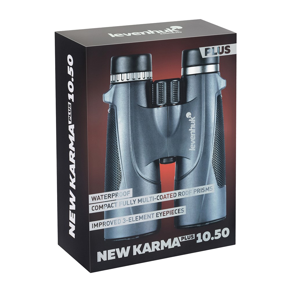 Бинокль Levenhuk New Karma PLUS 10 x 50 – это сочетание высококачественной оптики, прочного корпуса и эргономичного дизайна. 10-кратное увеличение и светосильные объективы с апертурой 50 мм превращают этот прибор в идеальный инструмент для наблюдений на средние и дальние дистанции, во время которых пользователь не пропустит ни одной детали. Этот бинокль станет отличным выбором для охотников, рыбаков, натуралистов, охранников на объектах и участников спасательных операций, позволяя в подробностях изучать окружающую среду в любую погоду и в любых световых условиях. Линзы и призмы прибора имеют многослойное просветляющее покрытие, придающее изображению дополнительной яркости, четкости и реалистичности даже в сумерках, а азотное заполнение корпуса предотвращает запотевание оптики при скачках окружающей температуры – теперь ничто не помешает вам вести эффективную работу на местности даже в центре протестующей природы. Levenhuk New Karma PLUS 10 x 50 превосходно защищен от воздействия пыли, воды, песка и грязи – его корпус герметизирован по стандарту IP67. Бинокль можно без опаски использовать рядом с водоемами – он выдержит кратковременное погружение в воду, если вы случайно выроните прибор. Но шансы этого сведены к минимуму: снаружи корпус бинокля покрыт резиновым напылением, сохраняющим надежное сцепление с ладонями и пальцами, даже если они полностью промокли под дождем. Бинокль можно установить на штатив, используя предусмотренную в корпусе резьбу стандарту 1/4" – это позволит сделать длительные наблюдения в одном направлении гораздо комфортнее. Также можно изменить межзрачковое расстояние, отрегулировав его под индивидуальные физиологические особенности в диапазоне от 56 до 74 мм. Имеется и функция диоптрийной подстройки – от –4 до +4 D .
