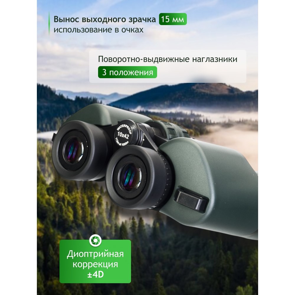 • Призмы Porro , 10-кратное увеличение