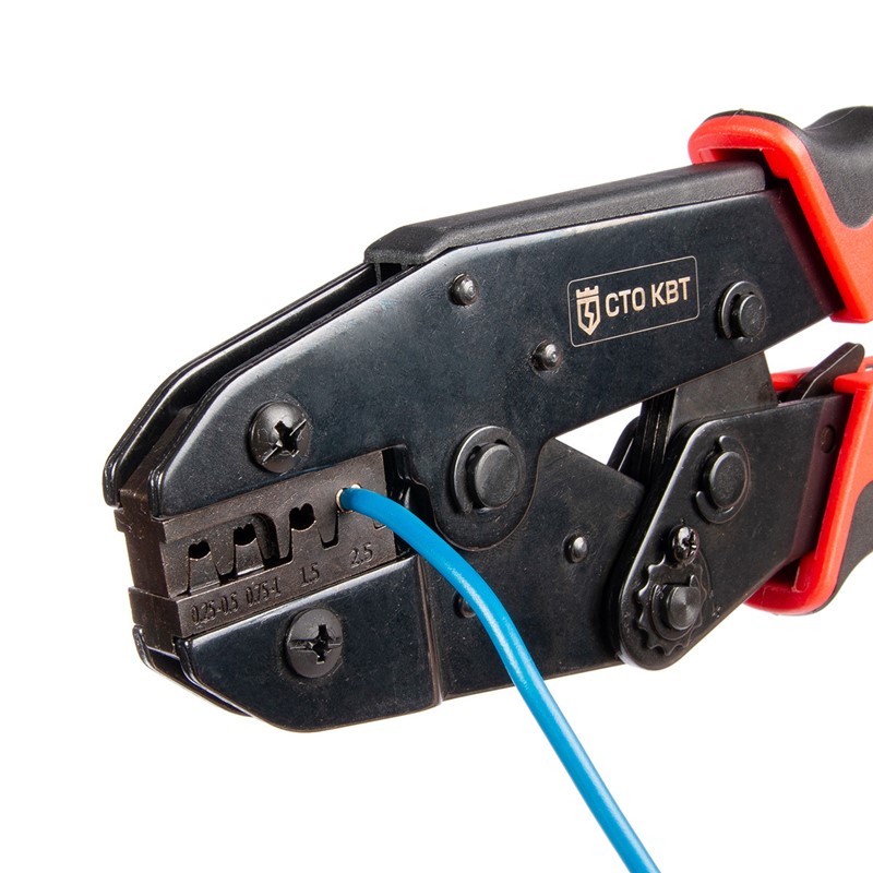 | Назначение, применение | Опрессовка неизолированных разъемов и наконечников (автоклемм) под двойной обжим по жиле и изоляции РП-М и РП-П (шириной 2.8; 4.8; 6.3; 7.5 мм), НК, ГС сечением 0.25 - 2.5 мм² |