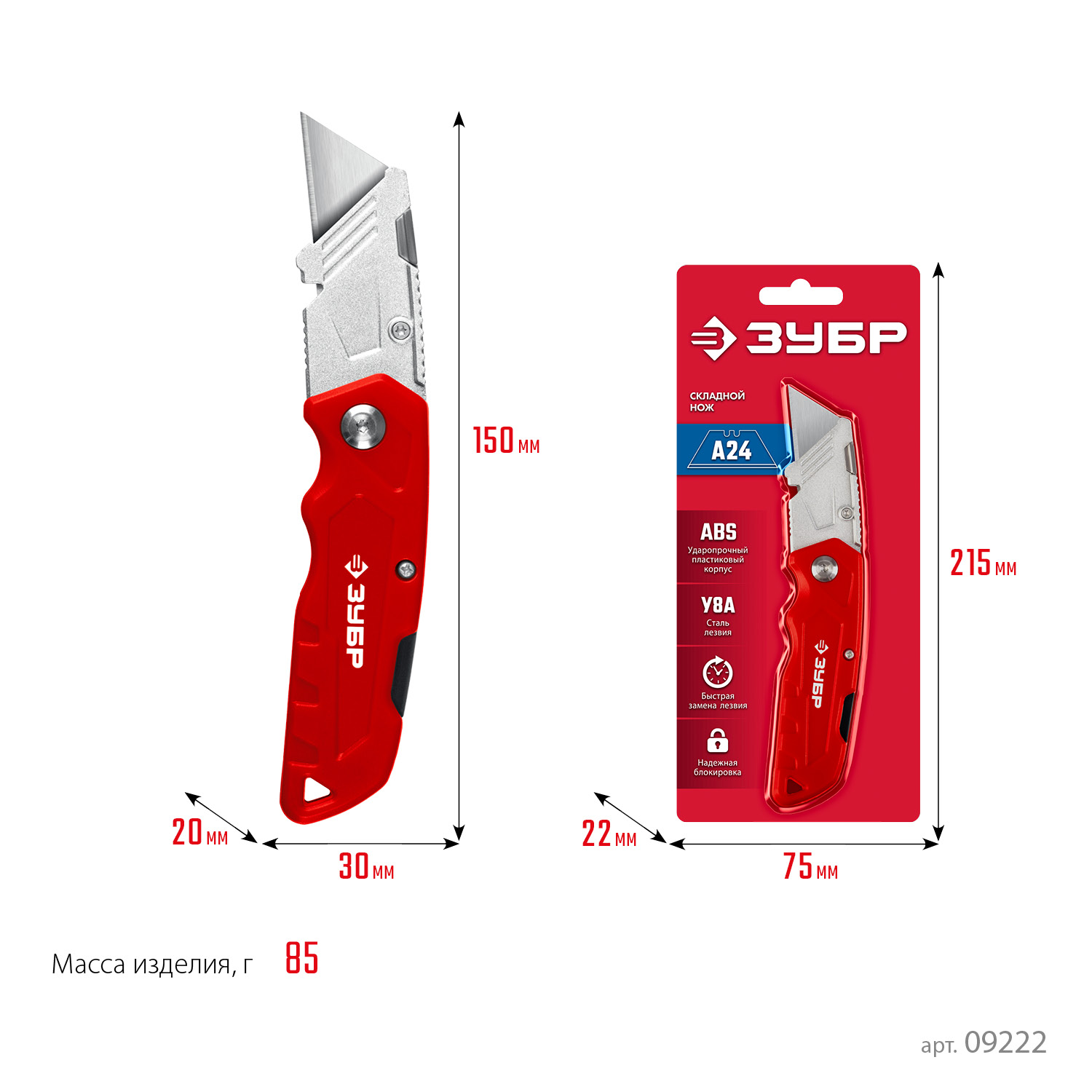 Универсальный складной нож Зубр А24 (09222)
