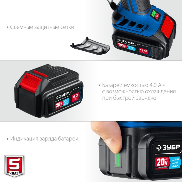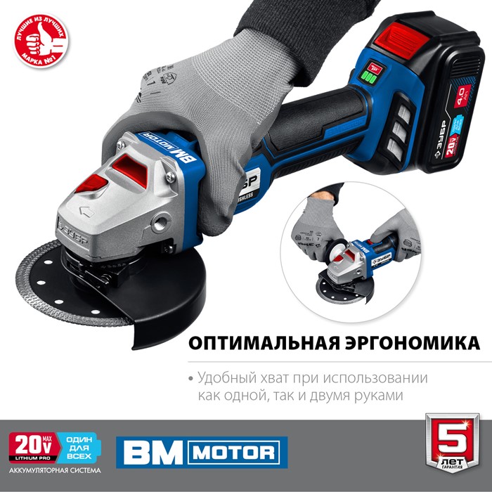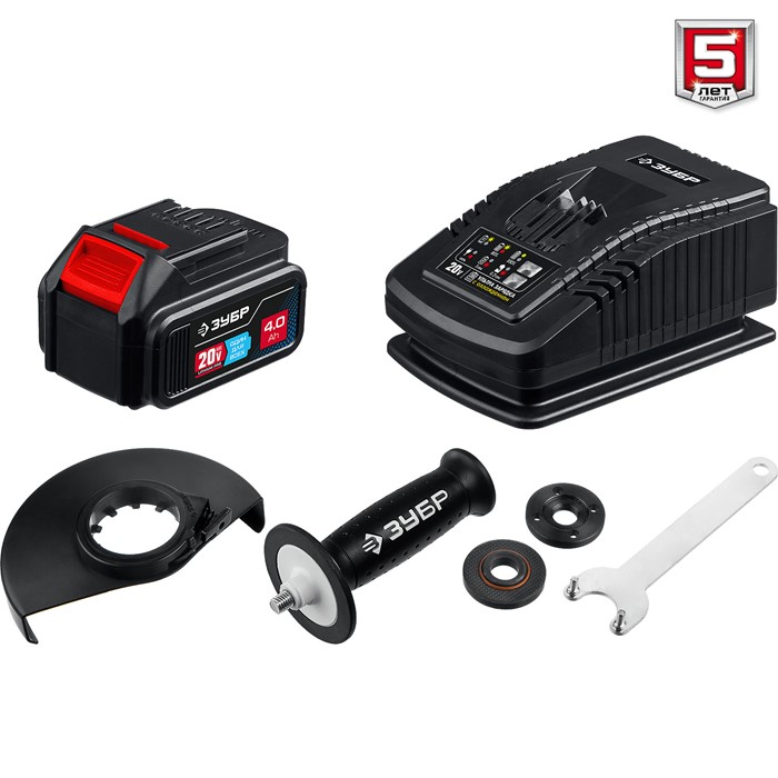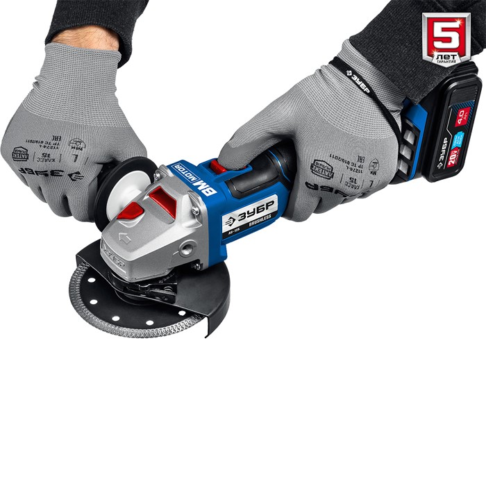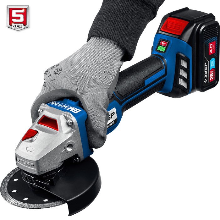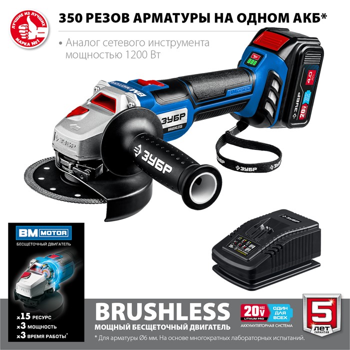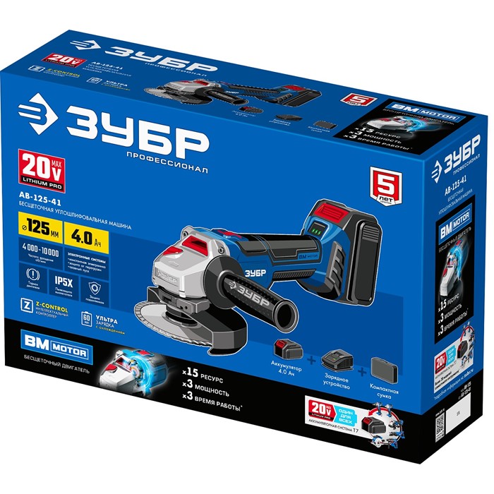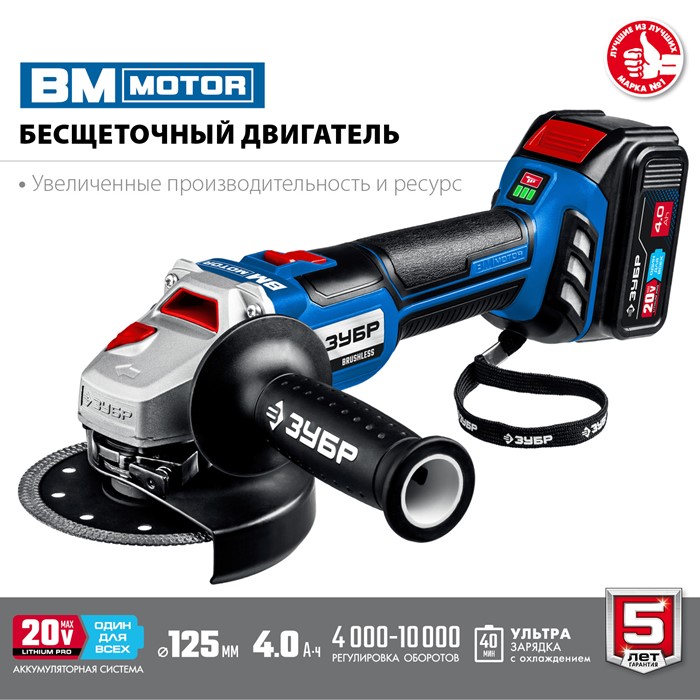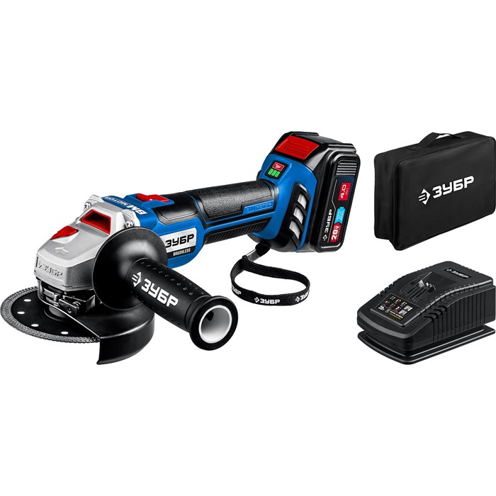 Бесщеточная УШМ, 1 АКБ (4 Ач), в сумке AB-125-41 Зубр