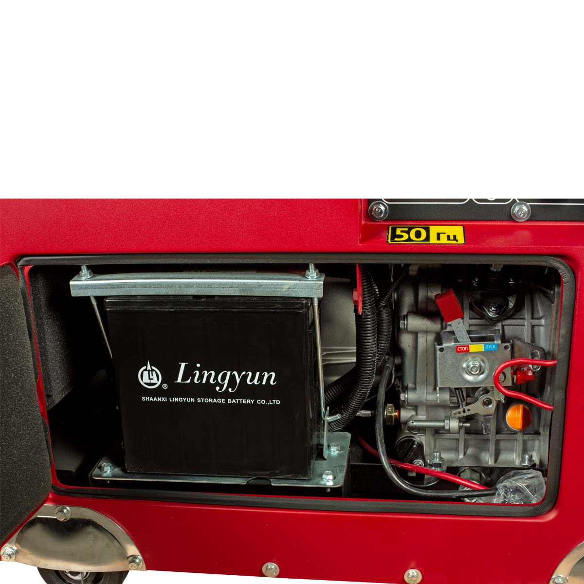 Дизель-генератор AMO ADG 6000EAS оборудован электростартером, его можно быстро и удобно запускать поворотом ключа. Такое решение особенно актуально на выезде и для решения задач, требующих частых перестановок. Электростартер питается от аккумулятора, который подзаряжается в процессе работы.