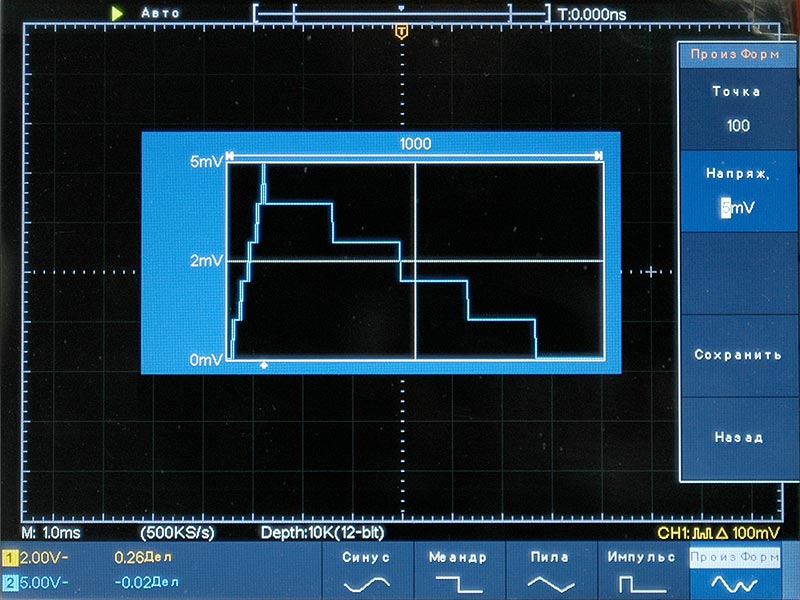 | Стандартные формы | Синус, меандр, импульсный, треугольный |
