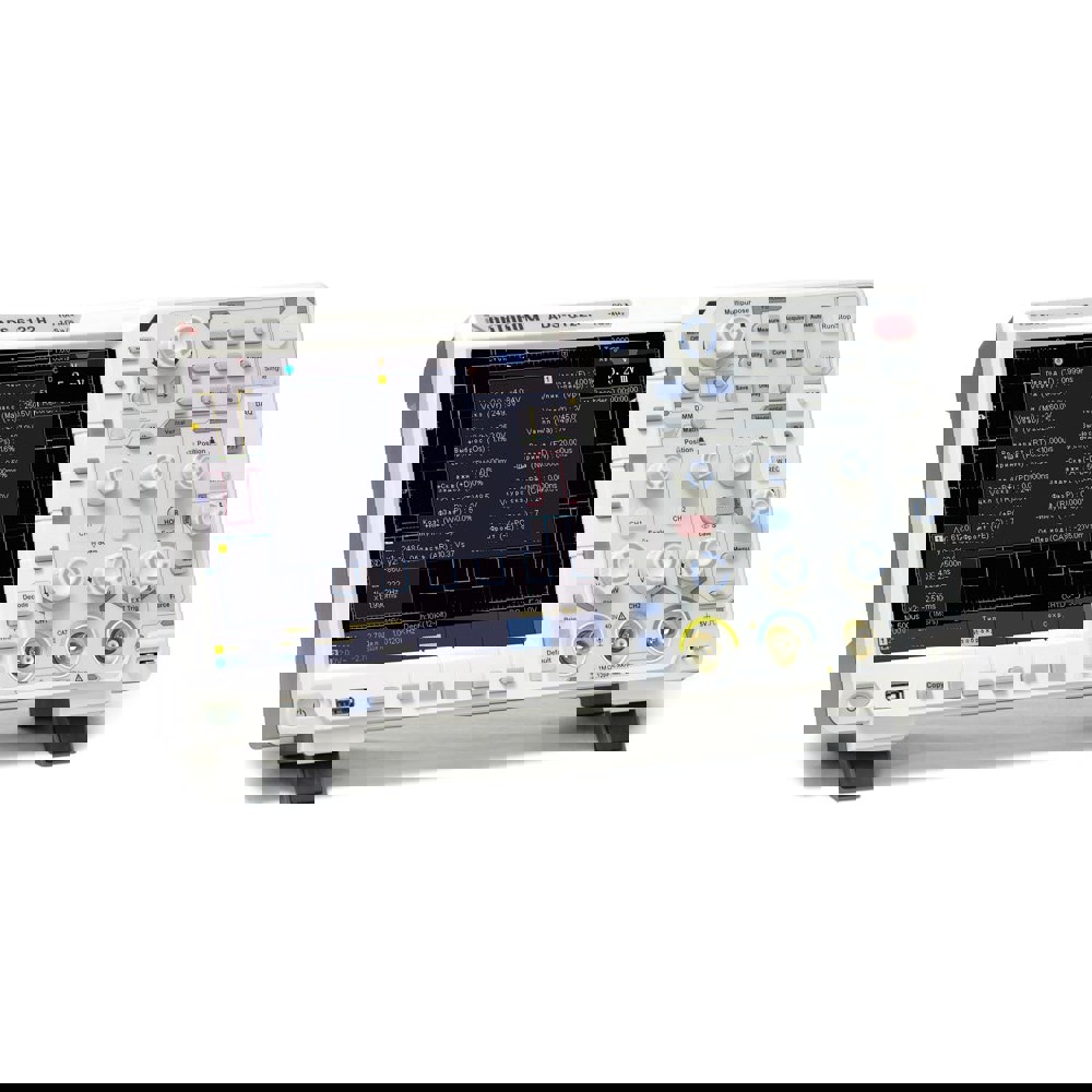 2 канала. Полоса пропускания - 300 МГц. Частота дискретизации - 2,5 Гвыб/с. АЦП 8 бит. Макс. память - 40 М точек. Скорость захвата 75 000 осц/сек. Верт. отклонение 1 мВ/дел - 10 В/дел. Гор. развертка 1 нс/дел - 1000 нс/дел. Входной импеданс: 1 МОм, 50 Ом. Курсорные измерения. 28 автоизмерения. Запуск: фронт, видео, импульс, скорость нарастания, рант, окно, ожидание, N фронт, логика. Запуск/декодирование I2C, SPI, RS232, CAN. Цифровой мультиметр. БПФ. Покадровый регистратор. Интерфейс: USB-host, USB-device, LAN. Выход Trig Out (Pass/Fail). Дисплей: 20 см, цветной, TFT, 800 х 600. Вес: 2,6 кг. Размеры: 340 x 177 x 90 мм.