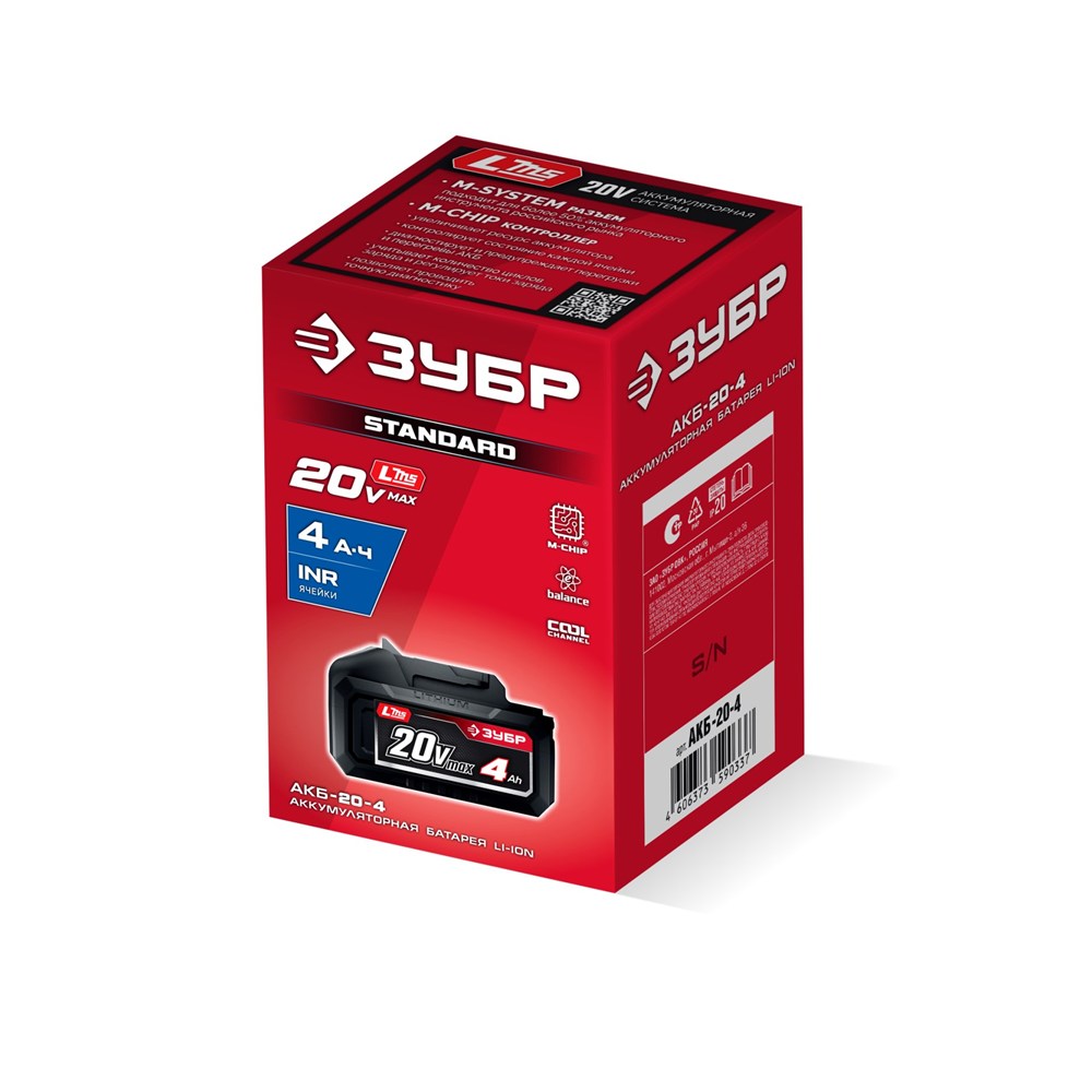 Батарея аккумуляторная ЗУБР 20 В, 4.0 Ач, тип LMS серия «МАСТЕР» (АКБ-20-4)