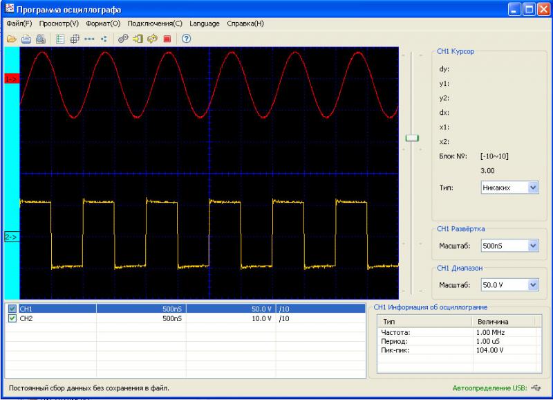 Программное обеспечение Актаком DSO-Soft предназначено для анализа сигналов полученных от осциллографа, их сохранения и печати.