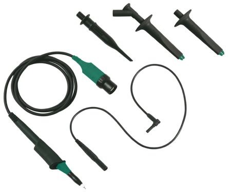 Щуп для измерения напряжения для ScopeMeter (осциллограф-мультиметр) повышенной прочности, зелено-черные, 100:1, 150 МГц, 1000 В (категория III)/600 В (категория IV), рабочее напряжение (напряжение между наконечником щупа и проводом опорного уровня): 2000 В (категория III)/1200 В (категория IV).