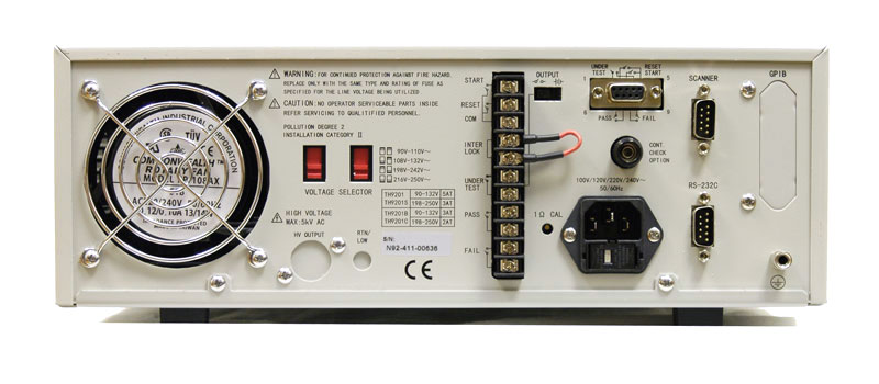 Высоковольтный тестер изоляции (до 5/6 кВ; 30/10 мА - AC/DC) и измеритель сопротивления изоляции (до 10 ГОм / 1000 В). Авторазряд после теста. Измерение межвиткового дугового тока до 15/10 мА (AC/DC). Таймер нарастания / спада / теста до 999 с. Память (50 групп по 100 шагов тестирования, всего 500 шагов). Интерфейсы RS-232C, Handler, USB (option), GPIB (option), Remote I/O (option). Дисплей ЖКИ 240х64 точек.