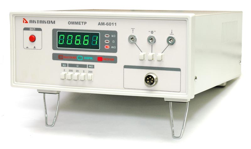 Омметр АМ-6011 предназначен для измерения сопротивления изоляции и низкоомных электрических цепей при различных рабочих напряжениях при проведении наладочных и ремонтных работ, а также при лабораторных исследованиях в условиях умеренного климата