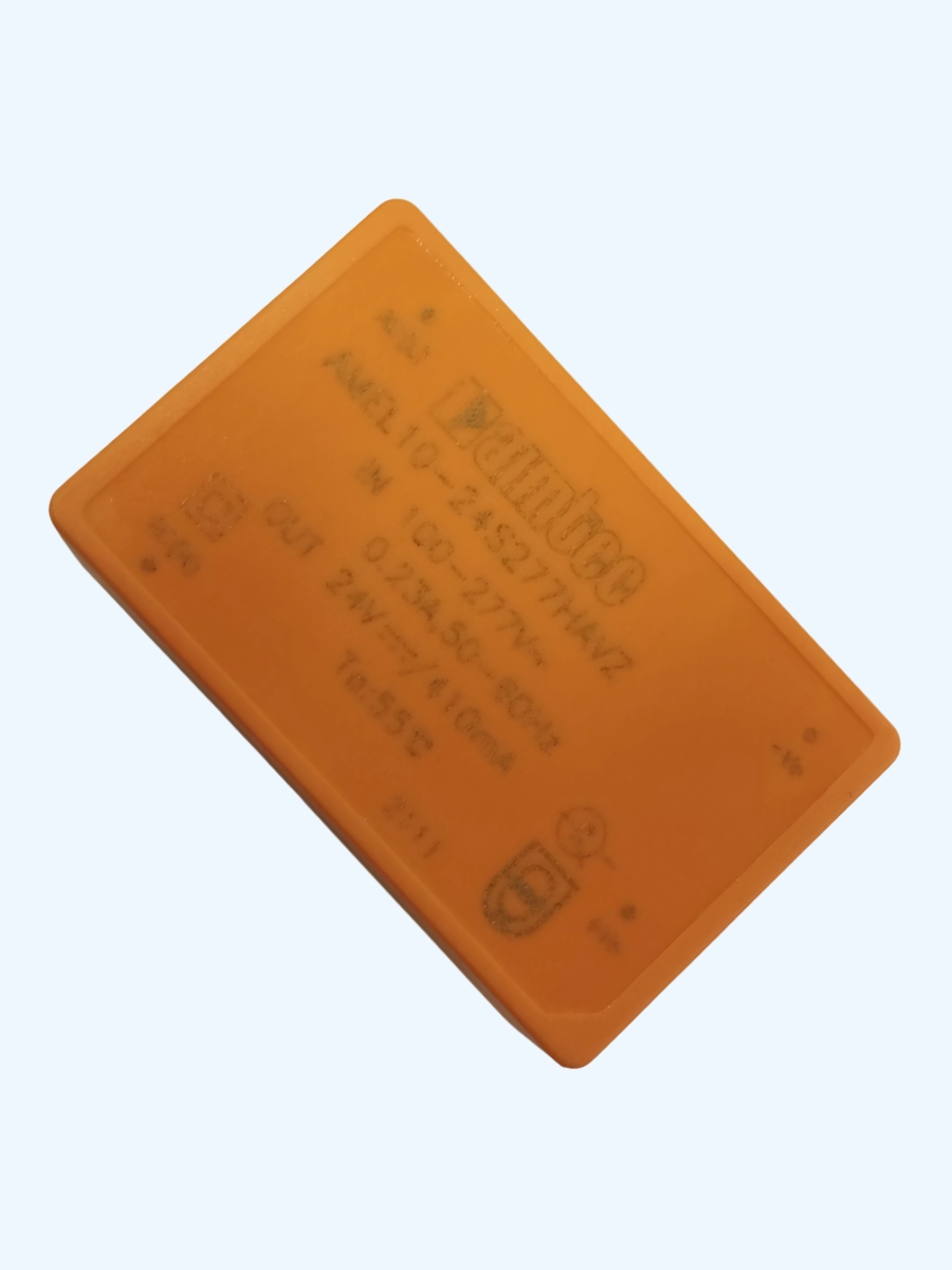AC/DC преобразователь 10 Вт; вход 85~305В; 47-63 Гц; однополярный выход 24В; 0.41А ; -40~85 ⁰C, дерейтинг при 55 ⁰C4000VAC 4000VAC ; MTBF 3200000 часов; КПД 85 %; ёмк. нагрузка макс.470 мкФ; корпус Encapsulated, пластик; установка на печатную плату; 25.4x40x21 мм; 34 г; частота преобр.65 кГц; защита от КЗ длительная