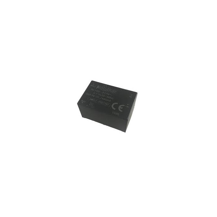 AC/DC преобразователь 2 Вт; вход 85~305В; 47-63 Гц; однополярный выход 5В5В; 0.4А ; -40~70 ⁰C, дерейтинг при 55 ⁰C; изоляция 4000VAC ; MTBF 300000 часов; КПД 70 %; ёмк. нагрузка макс.4000 мкФ; корпус Encapsulated; установка на печатную плату; 22.2x33.7x18 мм; 20 г; защита от КЗ длительная