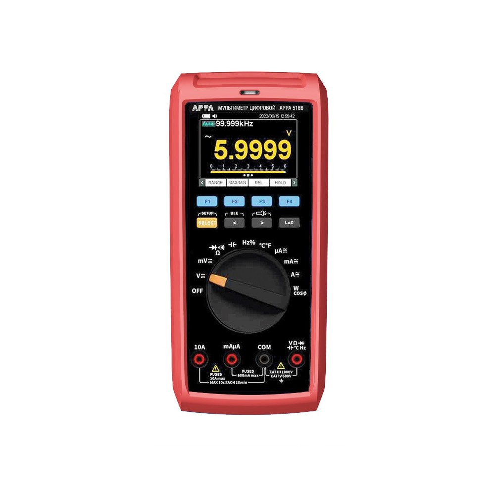 | APPA 516BИзмеряет | DCV, ACV, DCA, ACA, Мощность (кВт, ВА), Сопротивление, Прозвон цепи, Температура, Частота, Ёмкость, Проверка диодов |