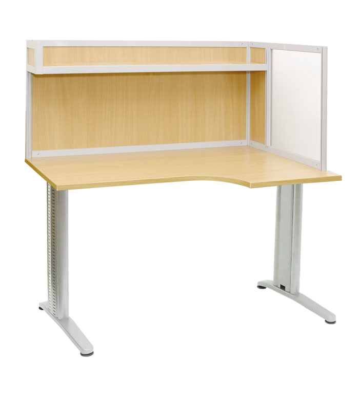 Эта модель стола была специально разработана для сотрудников офиса. Стол имеет эргономичную форму столешницы (80 см справа, 60 см слева), исполнение - ДСП в цвете «бук», цвет каркаса – серый (RAL9006). На полке над столешницей удобно размещаются CD-диски и другие носители информации, канцелярские принадлежности и др. мелочи. Прозрачная перегородка позволяет отделить индивидуальное рабочее пространство и дает возможность сосредоточиться на выполнении поставленных задач. Перегородка может быть левосторонняя или правосторонняя по Вашему желанию. Современный дизайн – сочетание цветов «серебристый металлик» и «бук» придают мебели «техногенный» внешний вид и позволяет гармонично вписываться в любой интерьер.