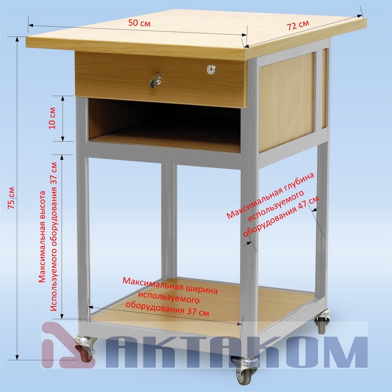 Стол подкатной АКТАКОМ АРМ-5055-ESD является практичным дополнением к рабочим столам АКТАКОМ серии АРМ-4ххх. Высота столешницы идеально совпадает с высотой стола и, таким образом, подкатной АРМ-5055-ESD удобно использовать как продолжение поверхности рабочего стола. В таком применении удобно устанавливать на подкатной стол ремонтируемое оборудование (приборы) и перемещать его между различными рабочими столами серии АРМ-4ххх.