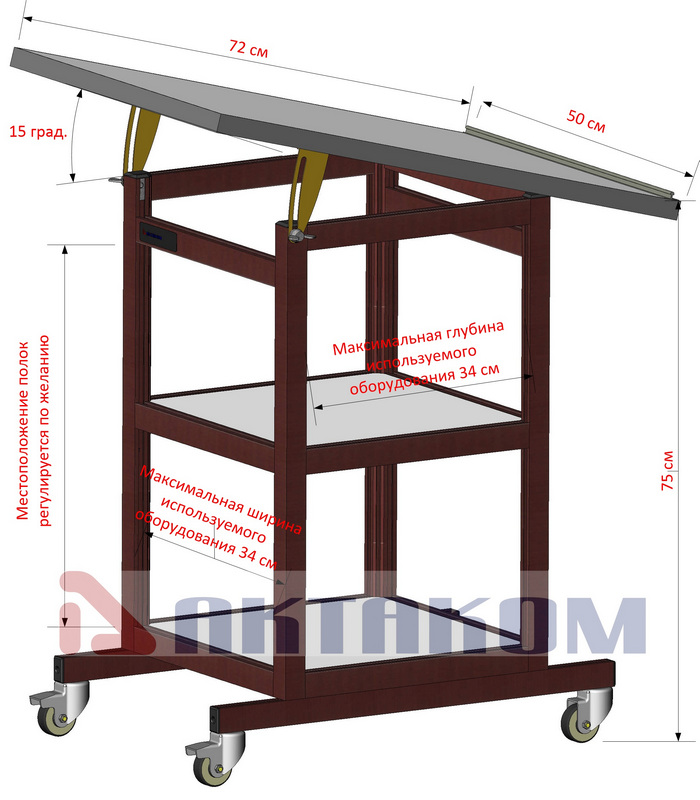 АРМ-5152-9-ESD Подкатной столик с регулируемым наклоном рабочей поверхности с антистатической столешницей
