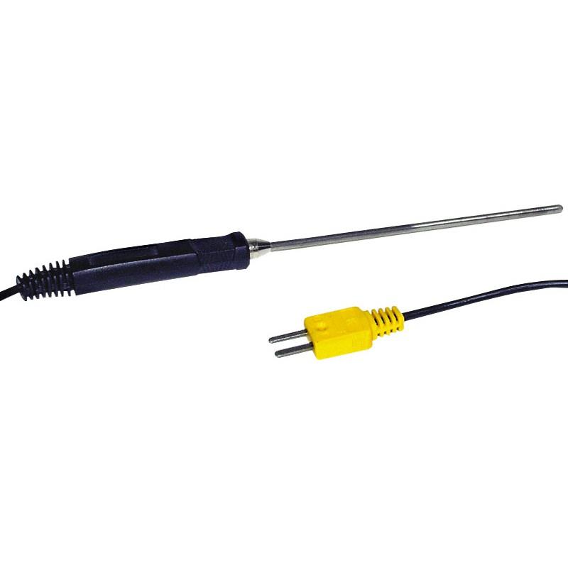 Погружная контактная термопара К-типа АТА-2102 для измерения температуры. Выполнена в виде щупа. Диапазон измерений -50°С... +900°С. Габаритные размеры: длина 100 мм, диаметр 3,2 мм.