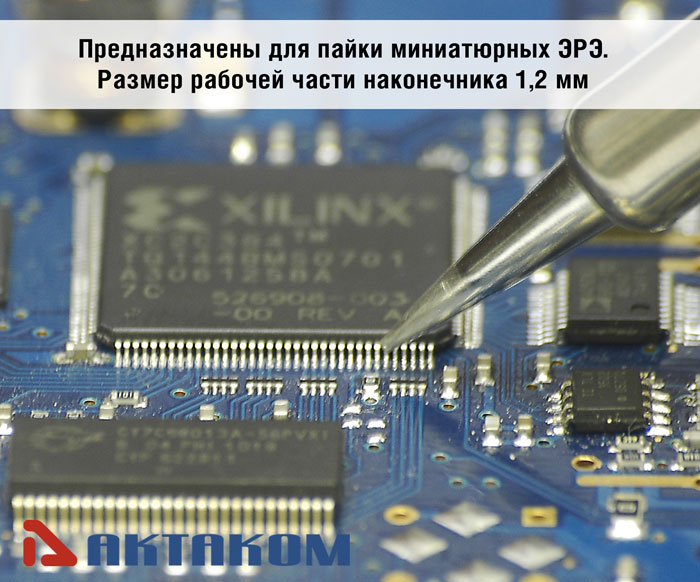 Наконечники с заточкой «Лопаточка», предназначены для пайки ЭРЭ. Размер рабочей части наконечника 1,2 мм.
