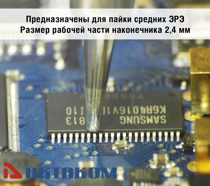 Наконечники с заточкой «Лопаточка», предназначены для пайки ЭРЭ. Размер рабочей части наконечника 2,4 мм