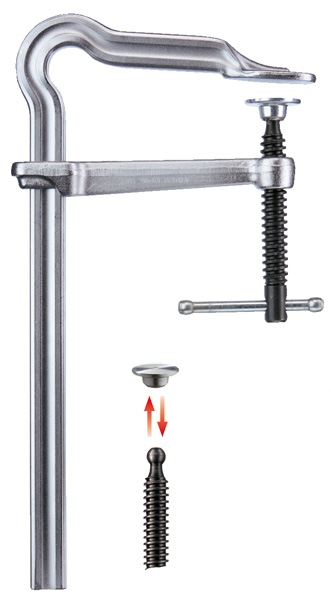 - Т-образная ручка с закруглёнными краями для простой передачи усилия при зажимании
